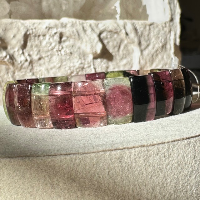 全ての光の波動を詰め込んだトルマリンはカラーによって その石の個性や発するエネルギーが異なります。 肉体や思考に 優しく そしてパワフルに影響してくれる マルチなStoneというイメージのトルマリン。 あなたの心が惹かれるカラーは どのトルマリンですか? トルマリン 13mm×8mm×4mm ゴム仕様 手首のサイズ(内径) 18,5cm **内径サイズにつきまして** サイズダウンは無料で致します。 パーツを使ったり、サイズアップで、別の石をご希望の場合は、 使った石の一粒単価での金額が追加されます。 ご希望の方は、ご注文時、もしくは、お問合せにて、 お申し付けくださいね。 **stone message** バイオレットカラーは 心身のエネルギーを入れ替え 頭部のチャクラからエネルギーを流し全体のオーラを強化してくれます。 インスピレーションが高まり 感性の扉を開きながら あるがままのあなたを生きられるようにサポートしてくれるでしょう。 インディゴライト トルマリンは 心の中を洗い流し チャクラを正常化させながら肯定的な思考と心を持って生きられるように あなたのオーラの場を守り 冷静な判断の中で 環境下にあるエネルギーの中で 過ごすことをサポートしてくれるでしょう。 ブルーカラーは 心身のエネルギーを入れ替え スロートチャクラを強化してくれます。 グリーンカラーは あなたの心身に溜まった必要のないエネルギーを手放させてくれることでしょう。 あなたの中にあるトラウマを解消させてくれたり 恐れからくる失望感から あなたを解放させてくれることでしょう。 創造性を高めてくれますので 希望の光の中で 新しい光をたくさん見出させてくれることでしょう。 イエローカラーのトルマリンは あなたの中にある腹部のチャクラにエネルギーを注ぎこみ 不必要なエネルギーを外へ流します。 あなたを囲む環境の中へ 光を注いでくれます。 エネルギーの入れ替えがスムーズになり心身共に活性され人間関係によい流れを運んでくれるでしょう。 解決したい問題があったり 困難な状況にであったとき 適切なエネルギーを与えてくれることでしょう。 チャクラを整え 活性させて生きるエネルギーと 前進してゆくために必要な精神のエネルギーレベルを高め修復していきます。 オレンジカラーは 腹部のチャクラへ エネルギーを注いでくれます。 活性させる 内面から ネガティブなものを 排出させる それを新たなエネルギーへと転換させてくれるでしょう。 ピンク&オレンジカラーのトルマリンは 愛ある活性を手助けしてくれます。 恐れ 疑い 躊躇する心を解放しながら ハートをOPENに 心身が活性されながら 行動的なあなたを引出し 愛ある体験へと導いてくれるでしょう。 ピンクカラートルマリンは 愛に満たされて生きる人生を応援 サポートしてくれます。 ブラウンカラートルマリンは あなたが 今 抱えてる環境内での問題を あなたが心を持って対処できるように・・・ また 愛を持って 今を見守る事ができるように 力をかしてくれる事と思います。 その中で 核心の部分の問題からあなたを解放させるように 寄り添ってくれるでしょう。 レッドカラートルマリンは あなたの中のエネルギーを修復し 活性させるエネルギーを含んでいます。 あなたの心にとまる トルマリンに出会っていただけましたら 幸せです。 #ウォーターメロントルマリン