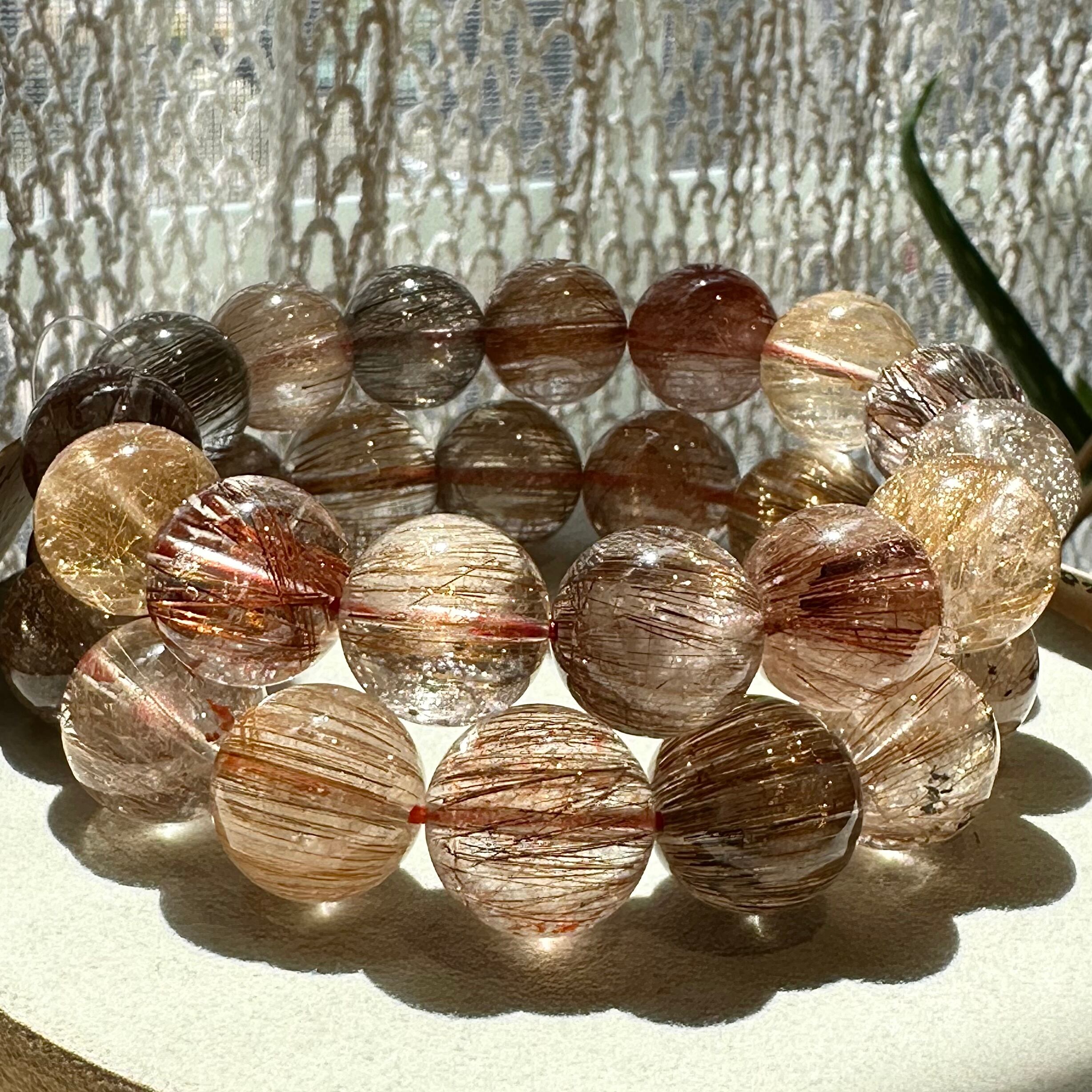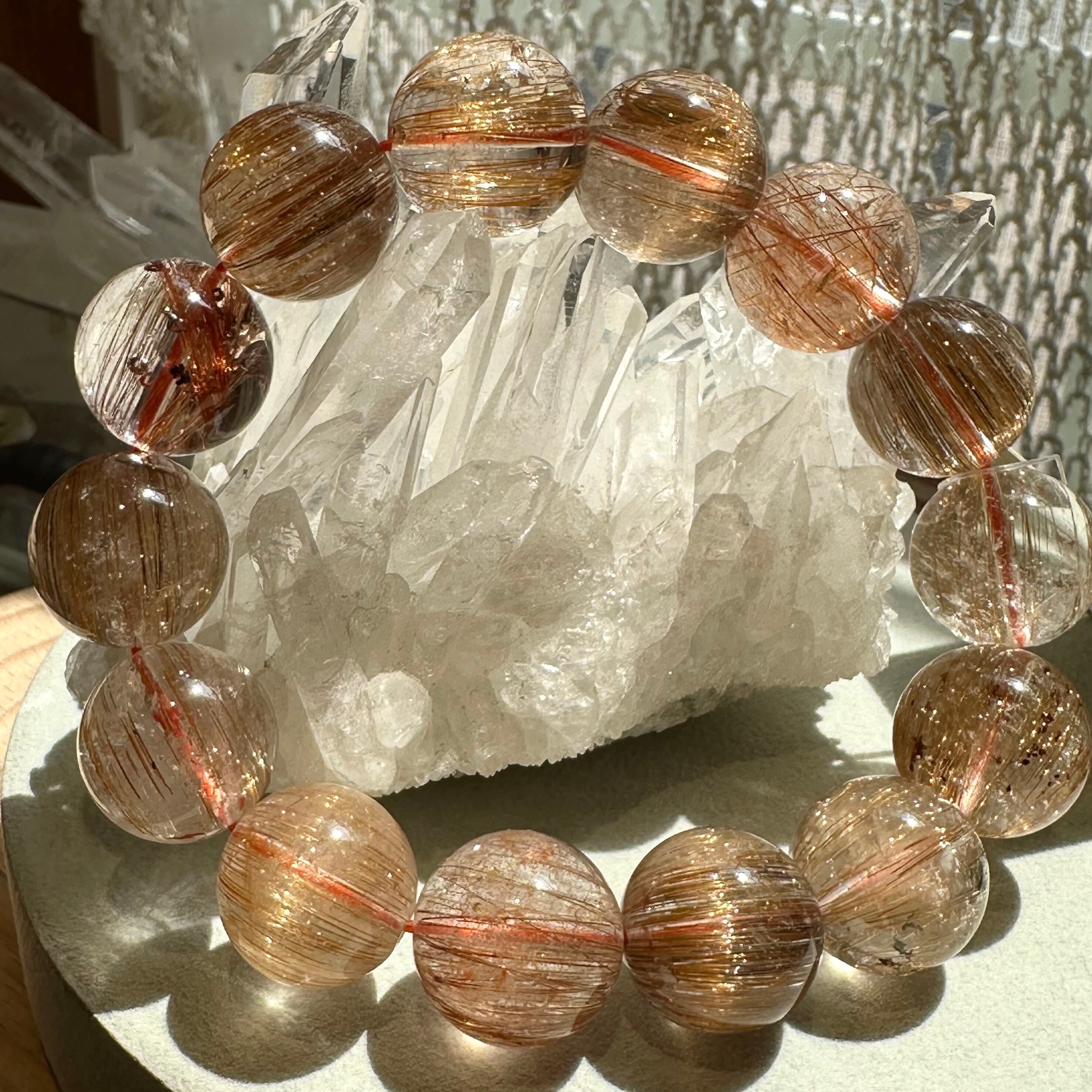 ミックスカラーのルチルクォーツ 大きなサイズのブレスレットです。
