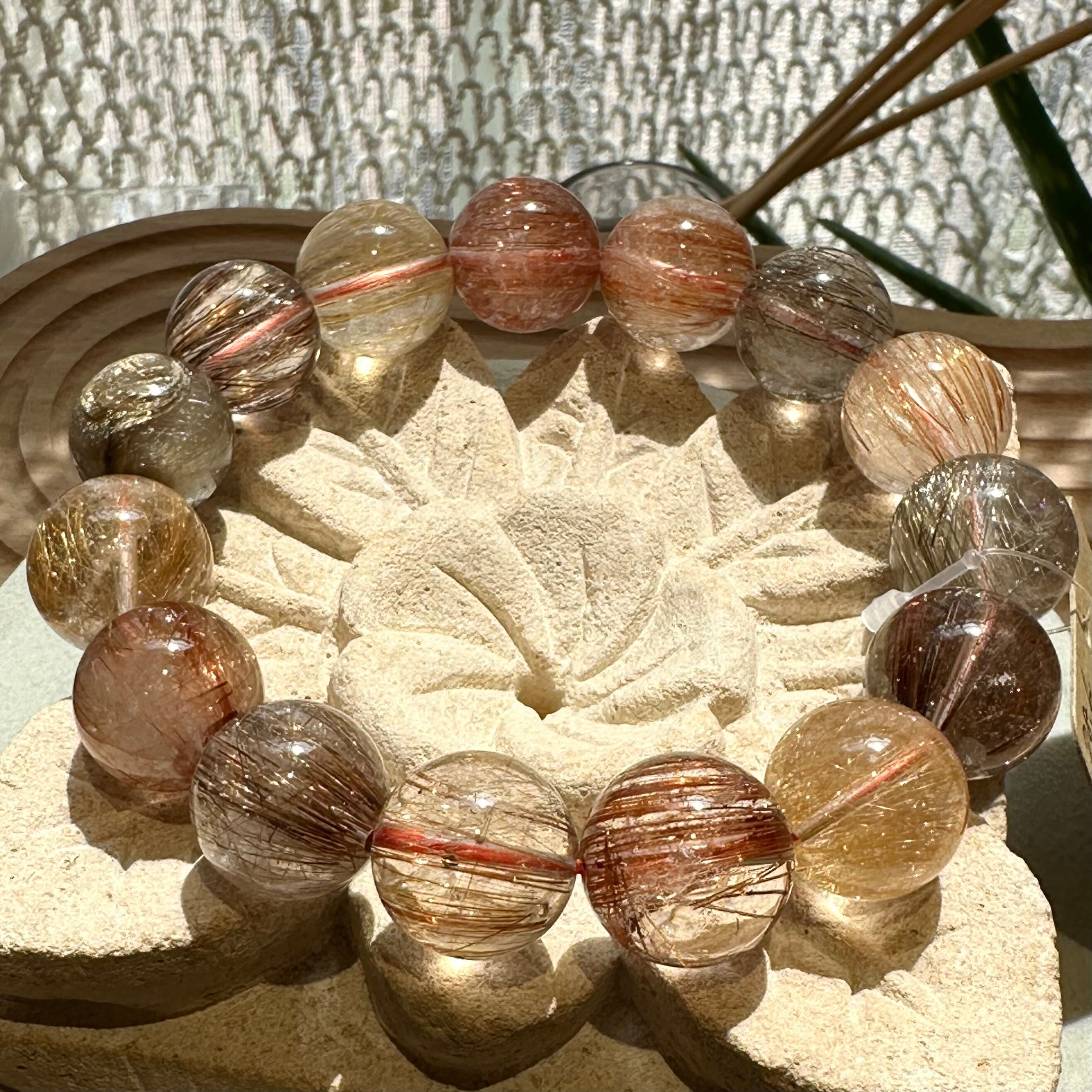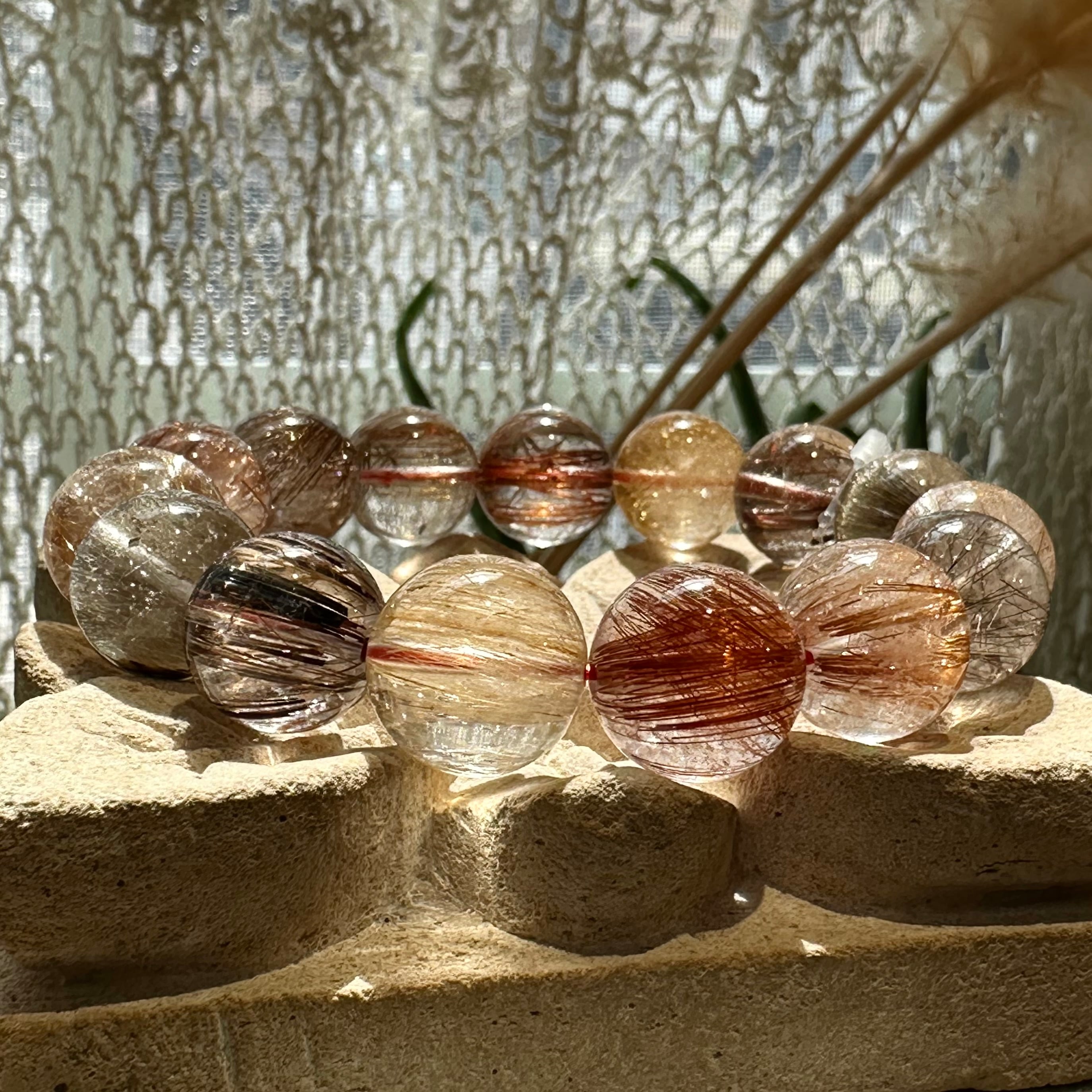 ミックスカラーのルチルクォーツ 大きなサイズのブレスレットです。