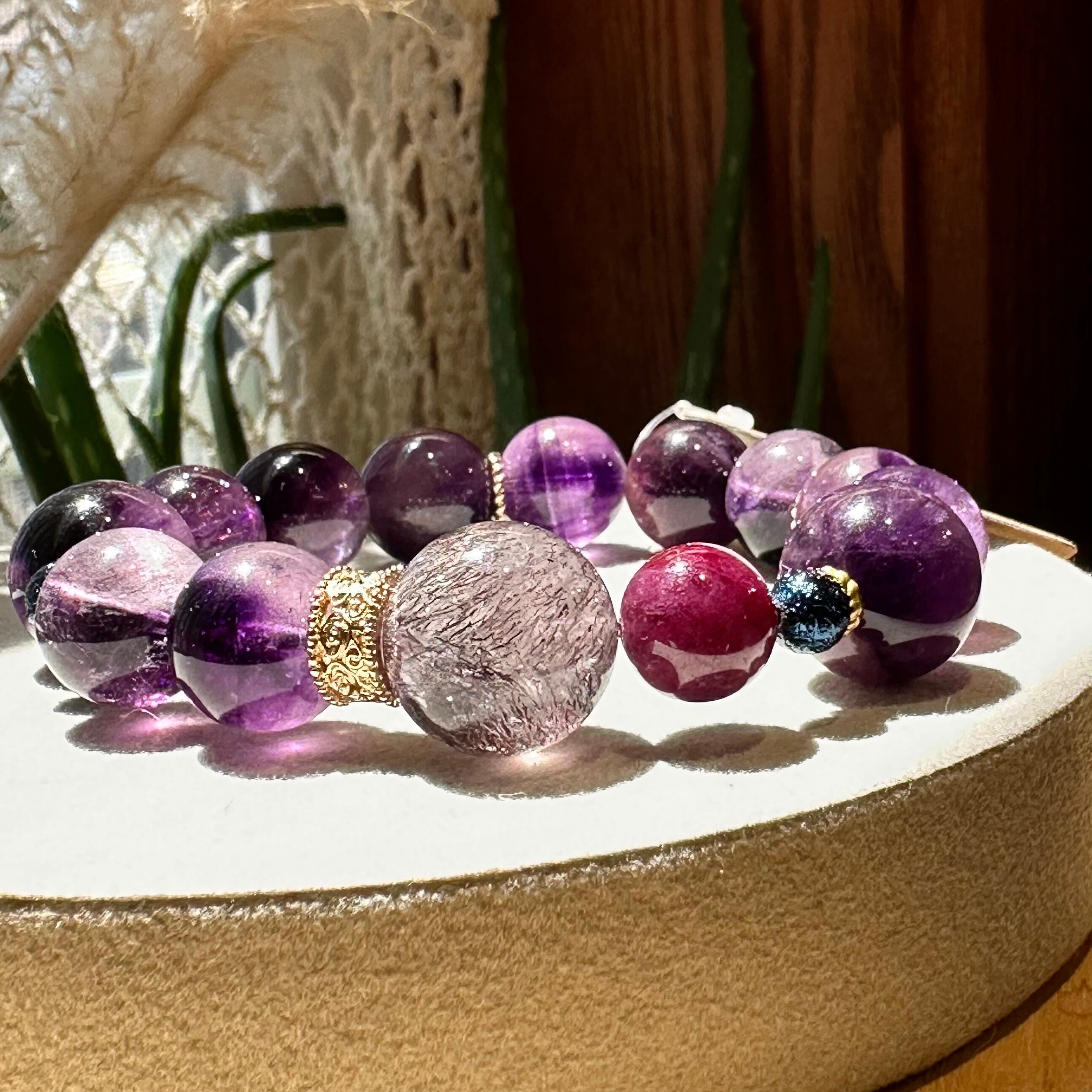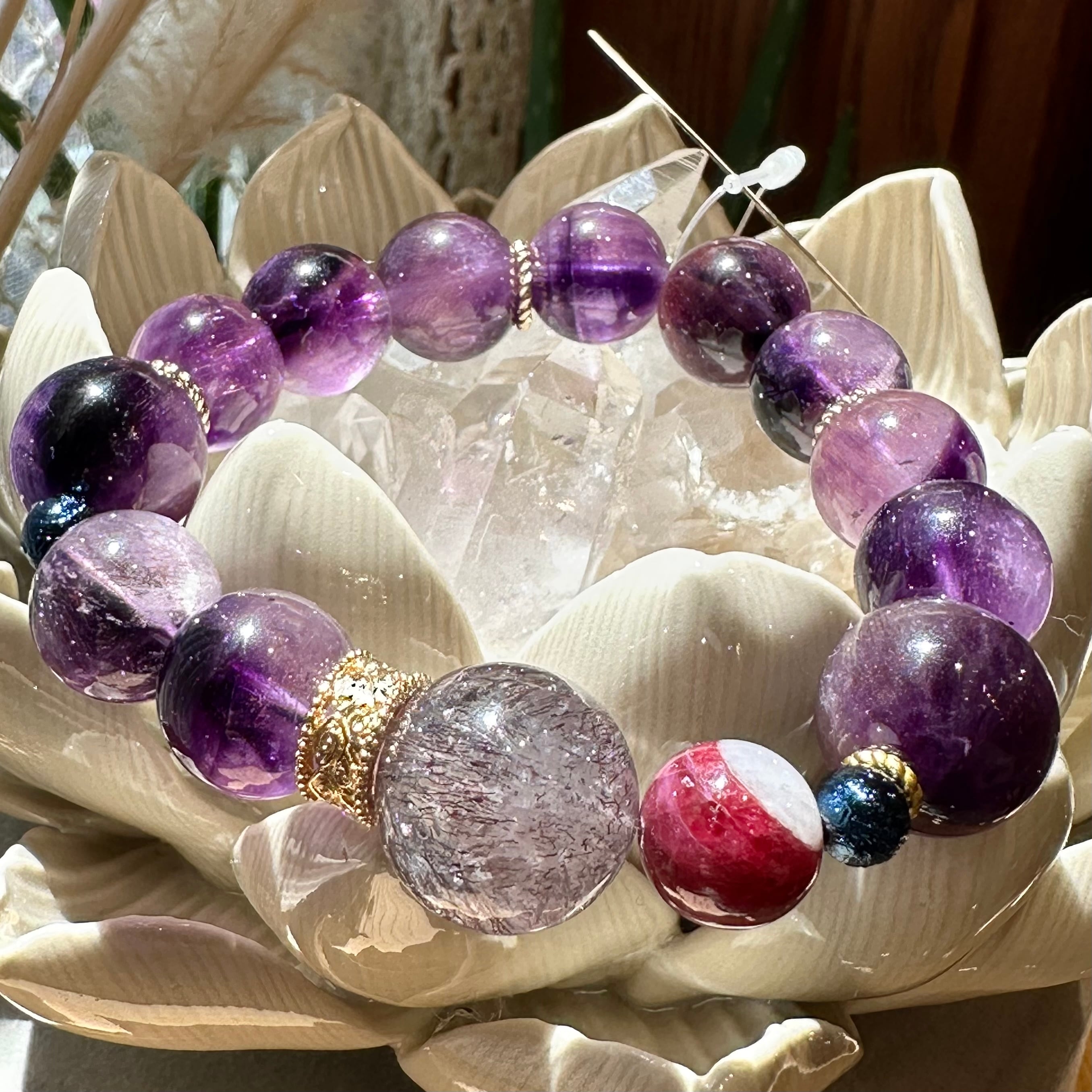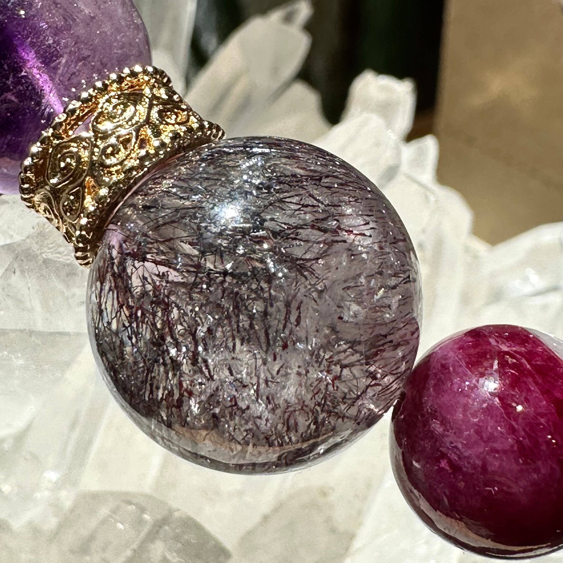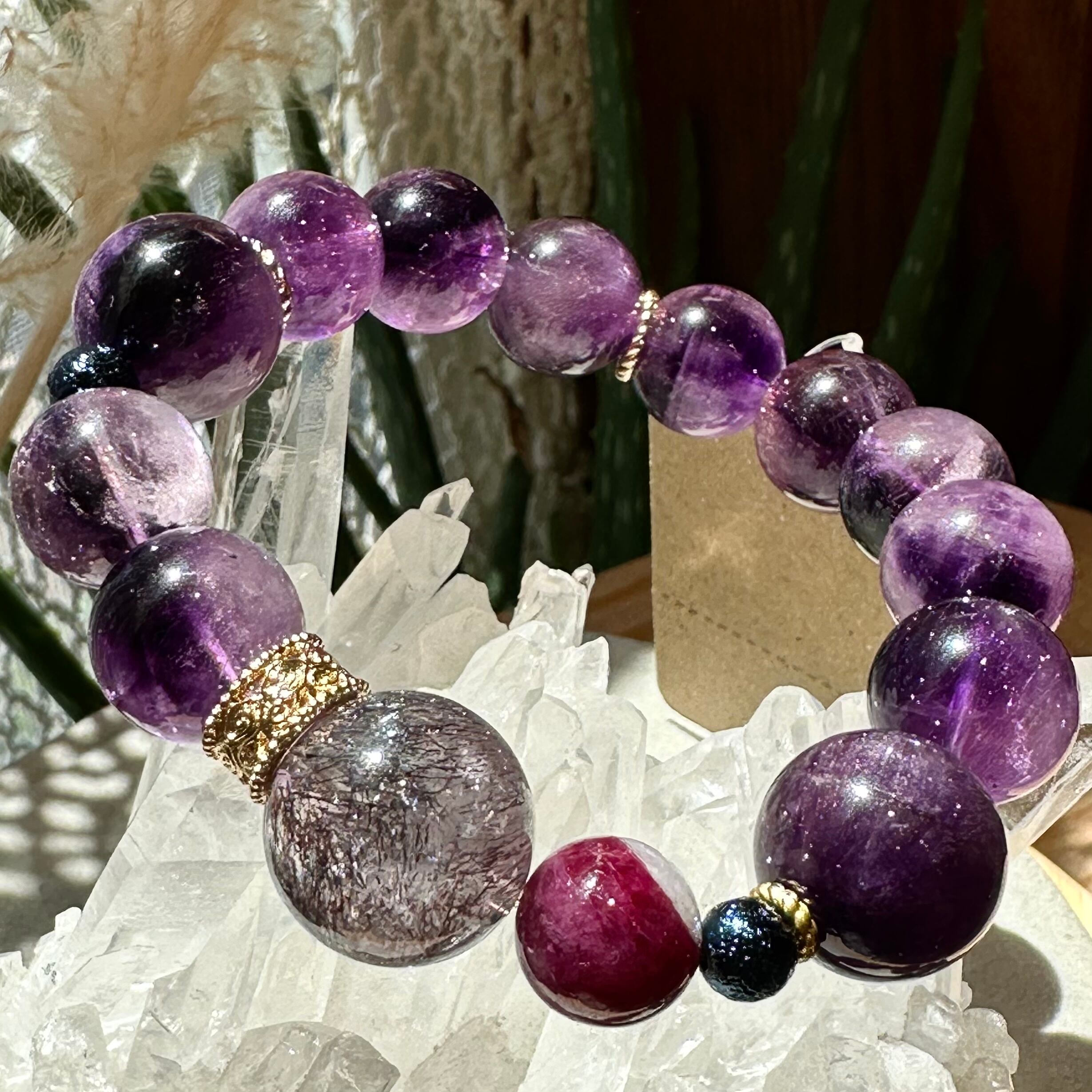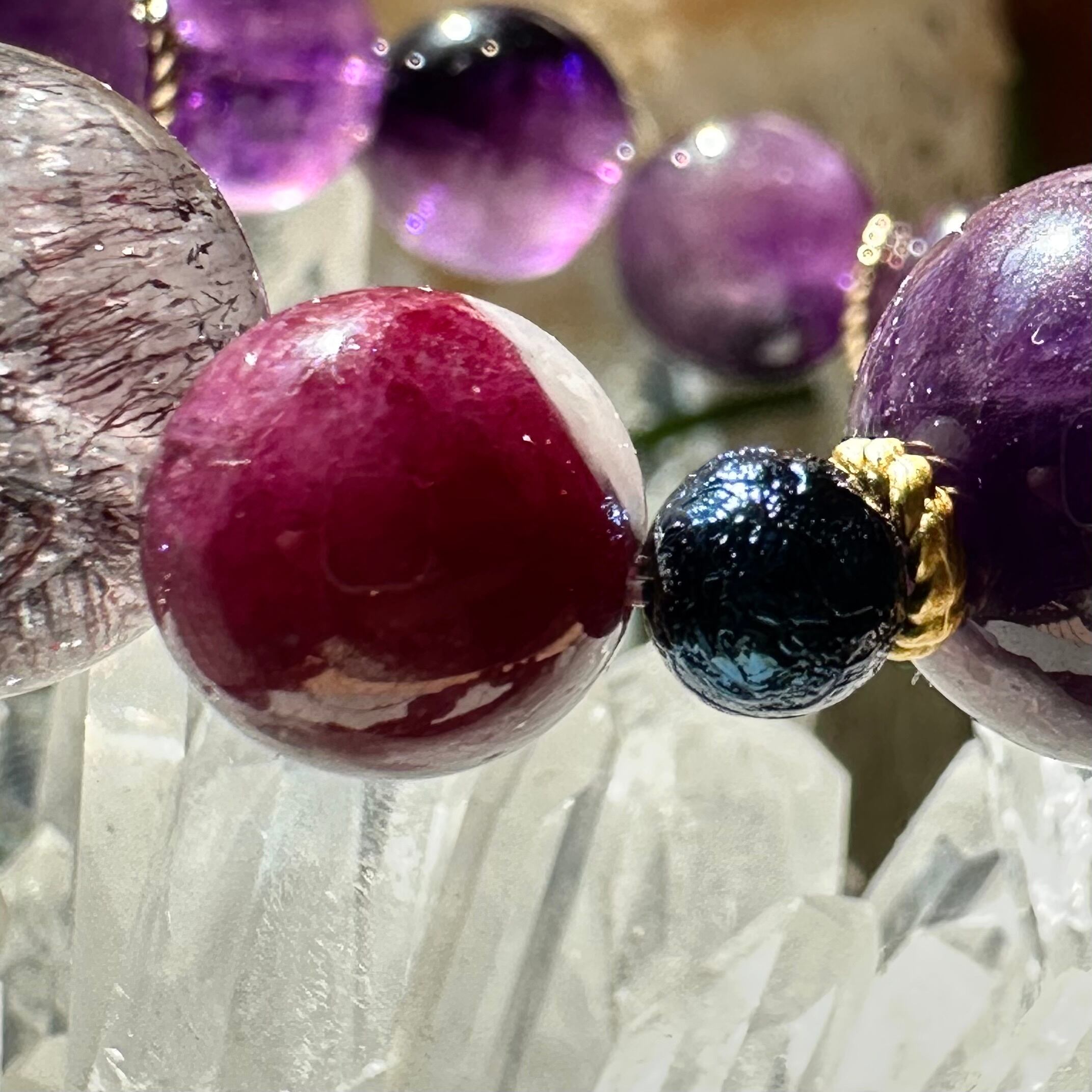 ◇アメジストセイクリッドセブン&ルビークォーツ&花火セイクリッドセブン&ギベオン◇デザインブレスレット257-db-asrg-01b