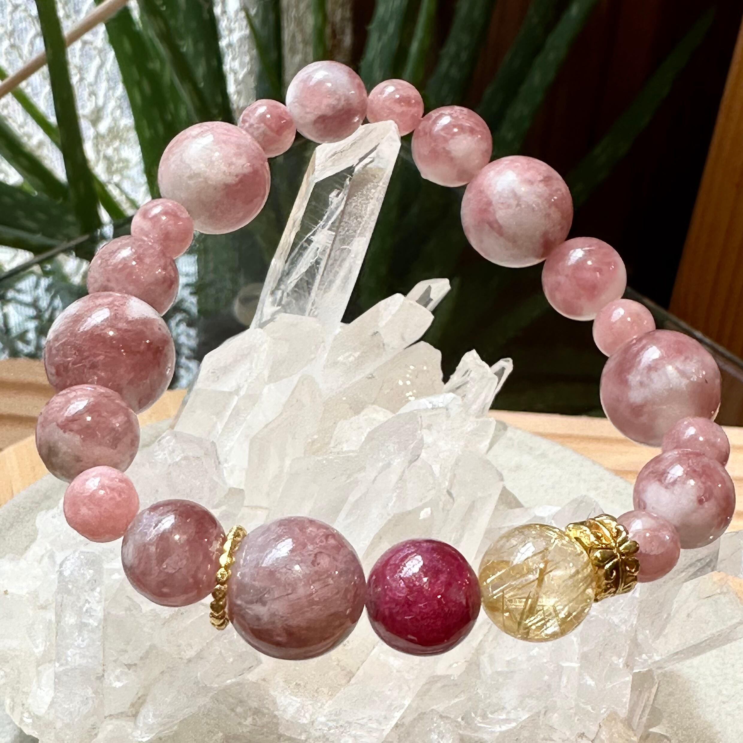 ◇レピドライトwithピンクトルマリン&ルビー&ルチルクォーツ ◇デザインブレスレット258-db-leptrrbrt-03b-c03