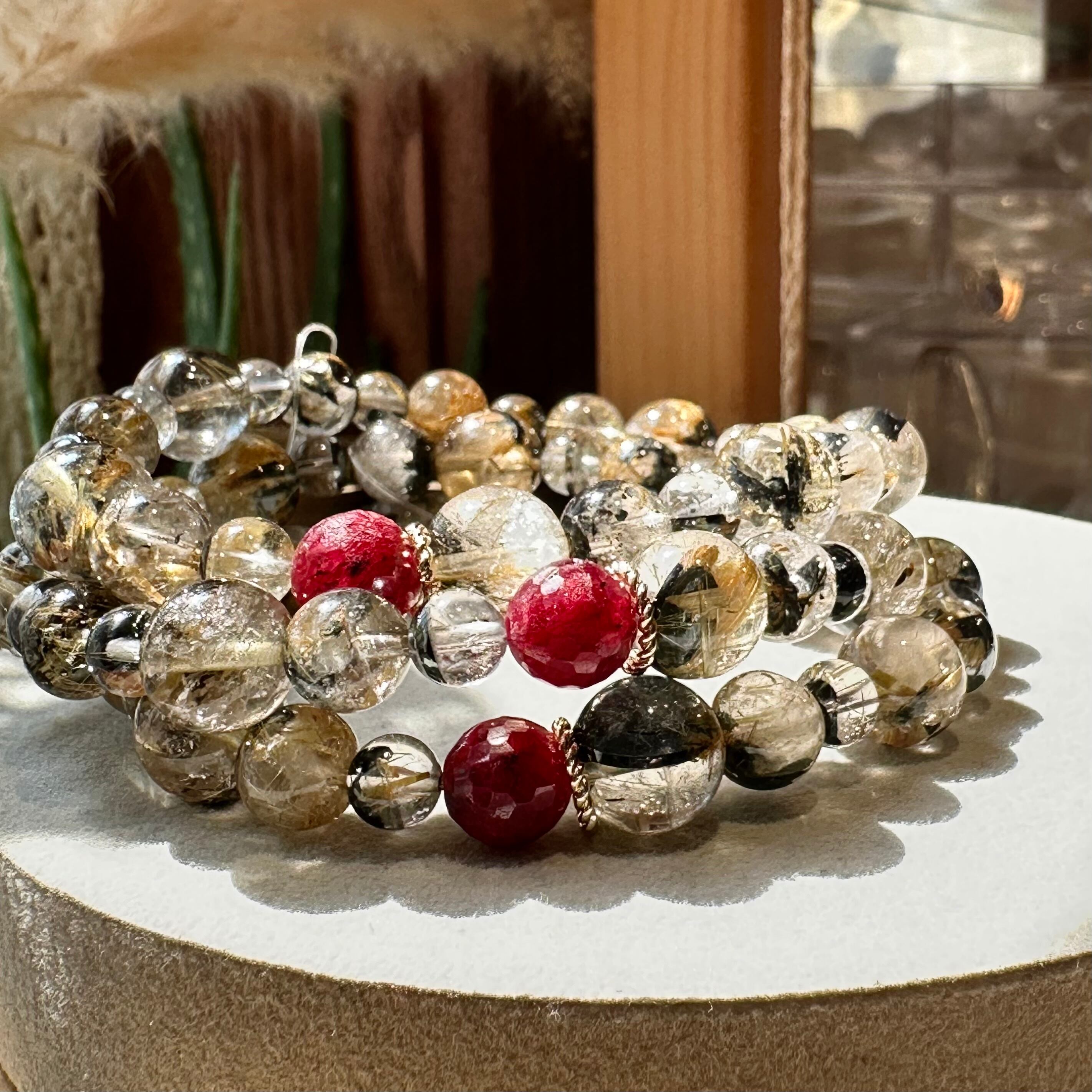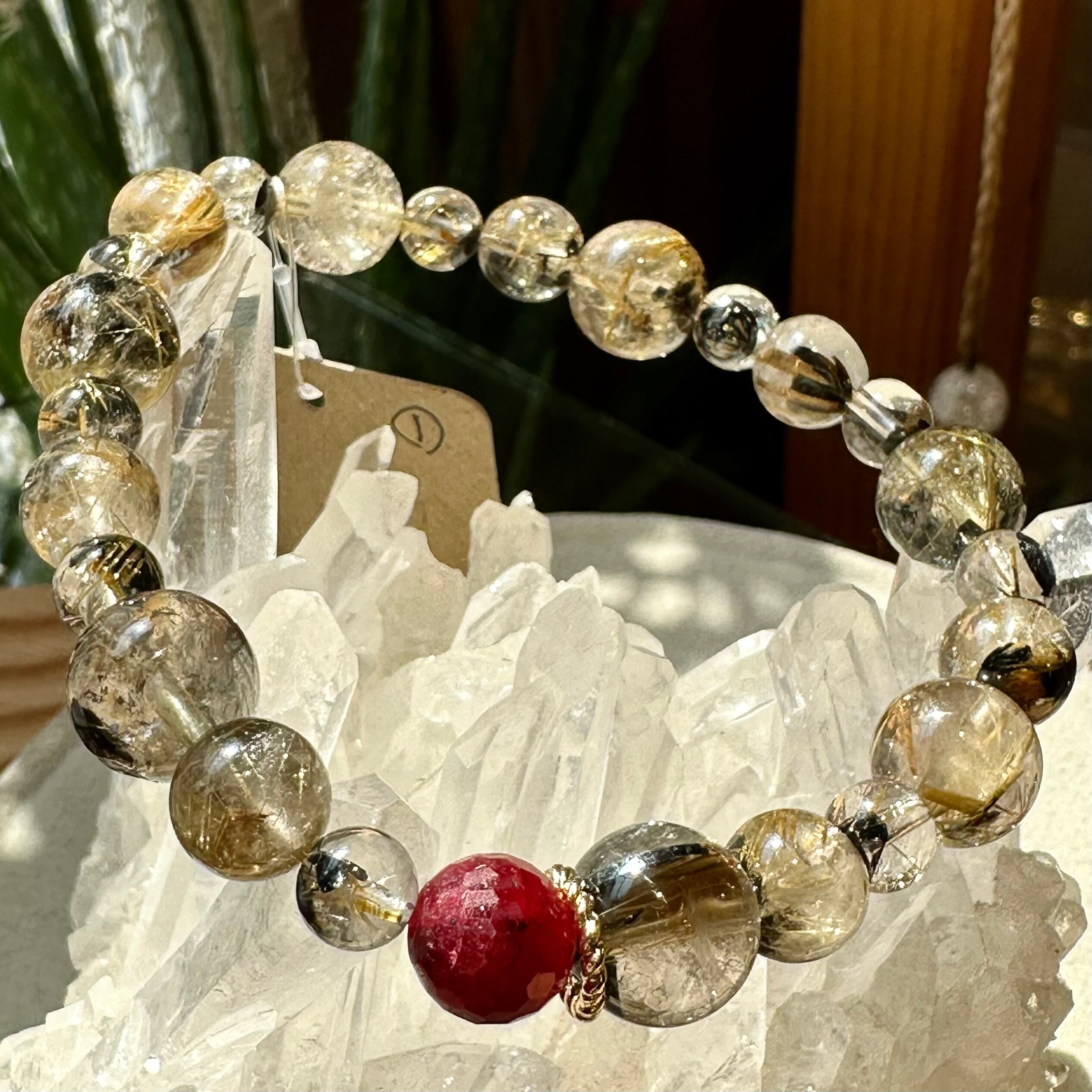 ◇タイチンルチルクォーツ&ルビー◇デザインブレスレット258-db-trtrrb-01b-c01