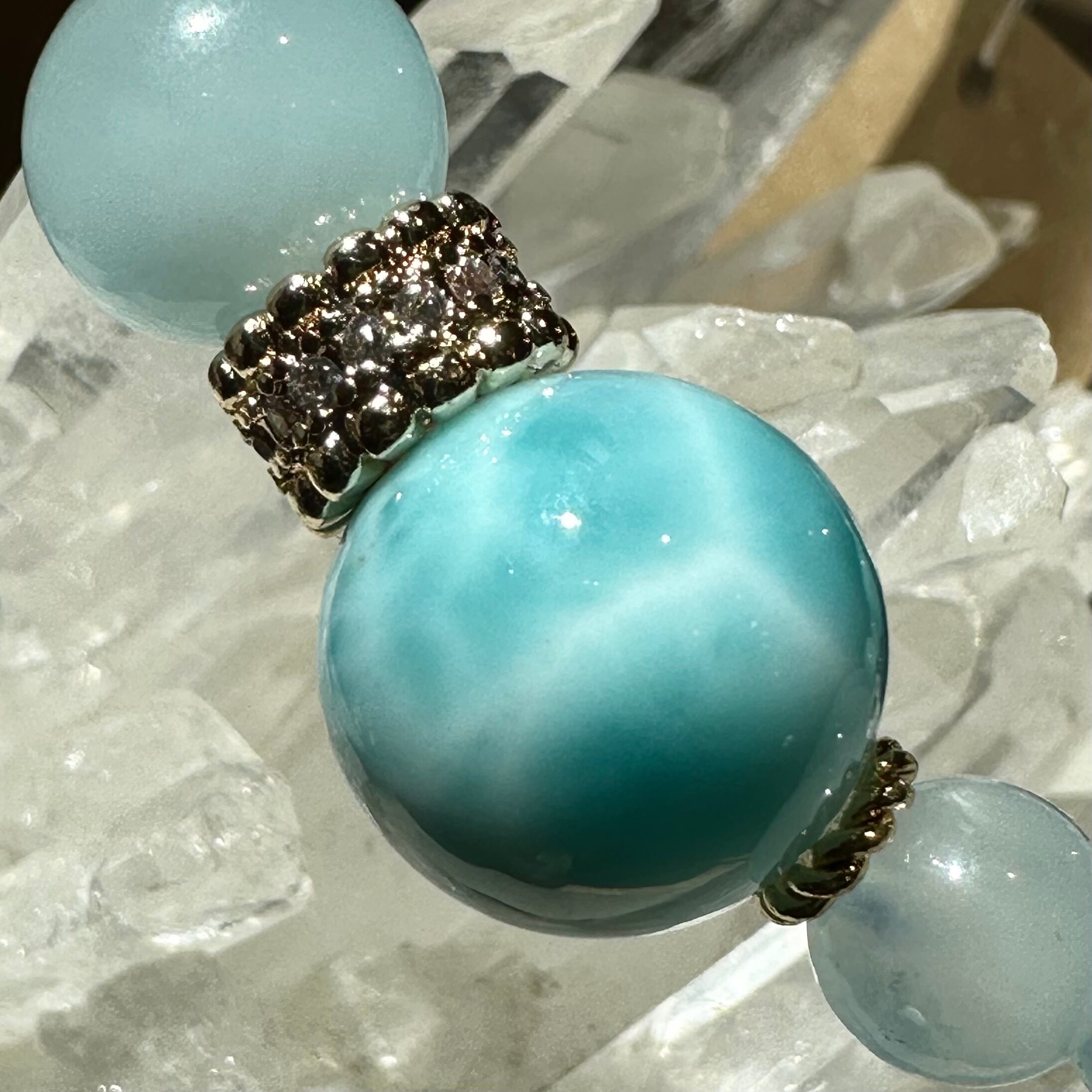 綺麗なラリマーが一粒入ったデザインブレスレットです♪
