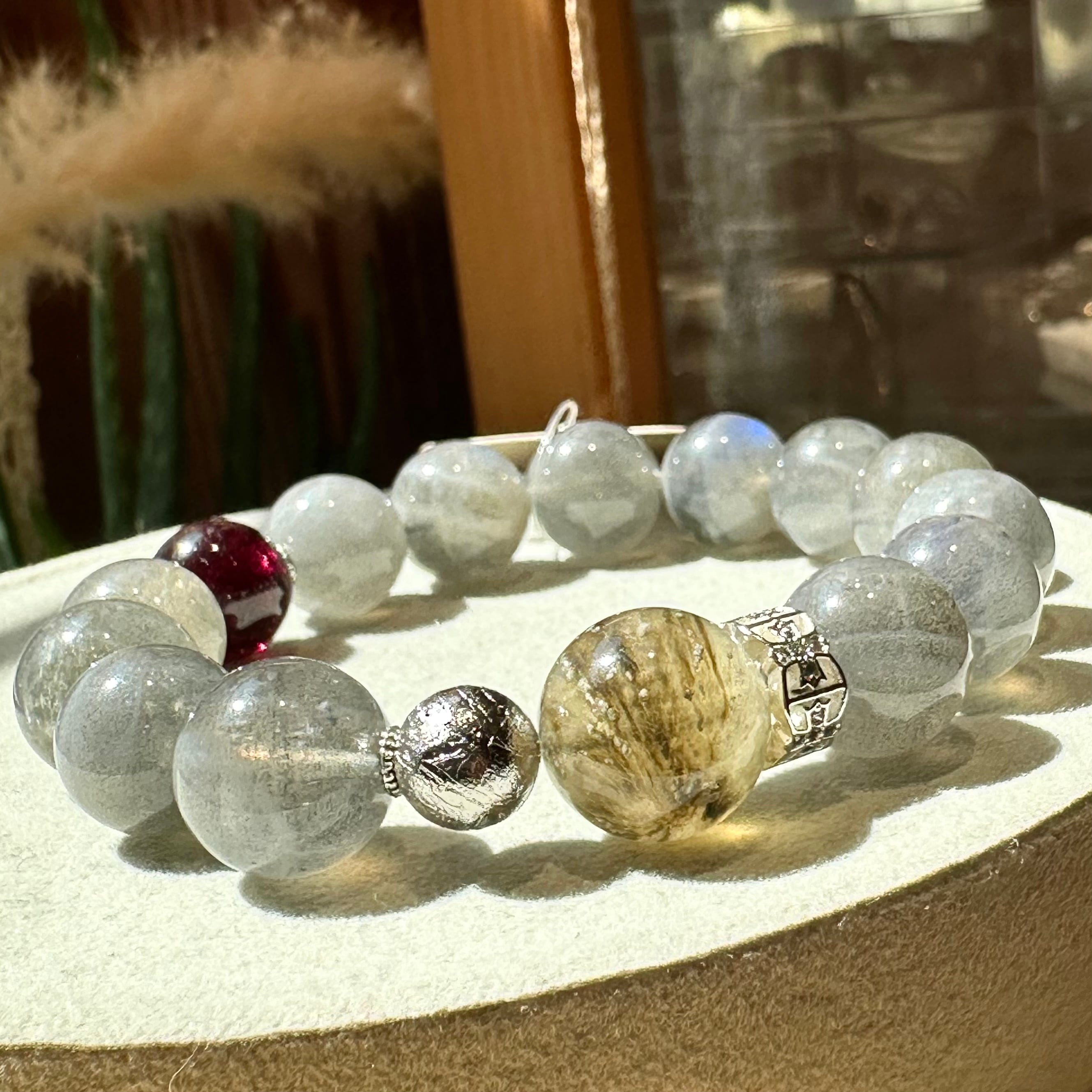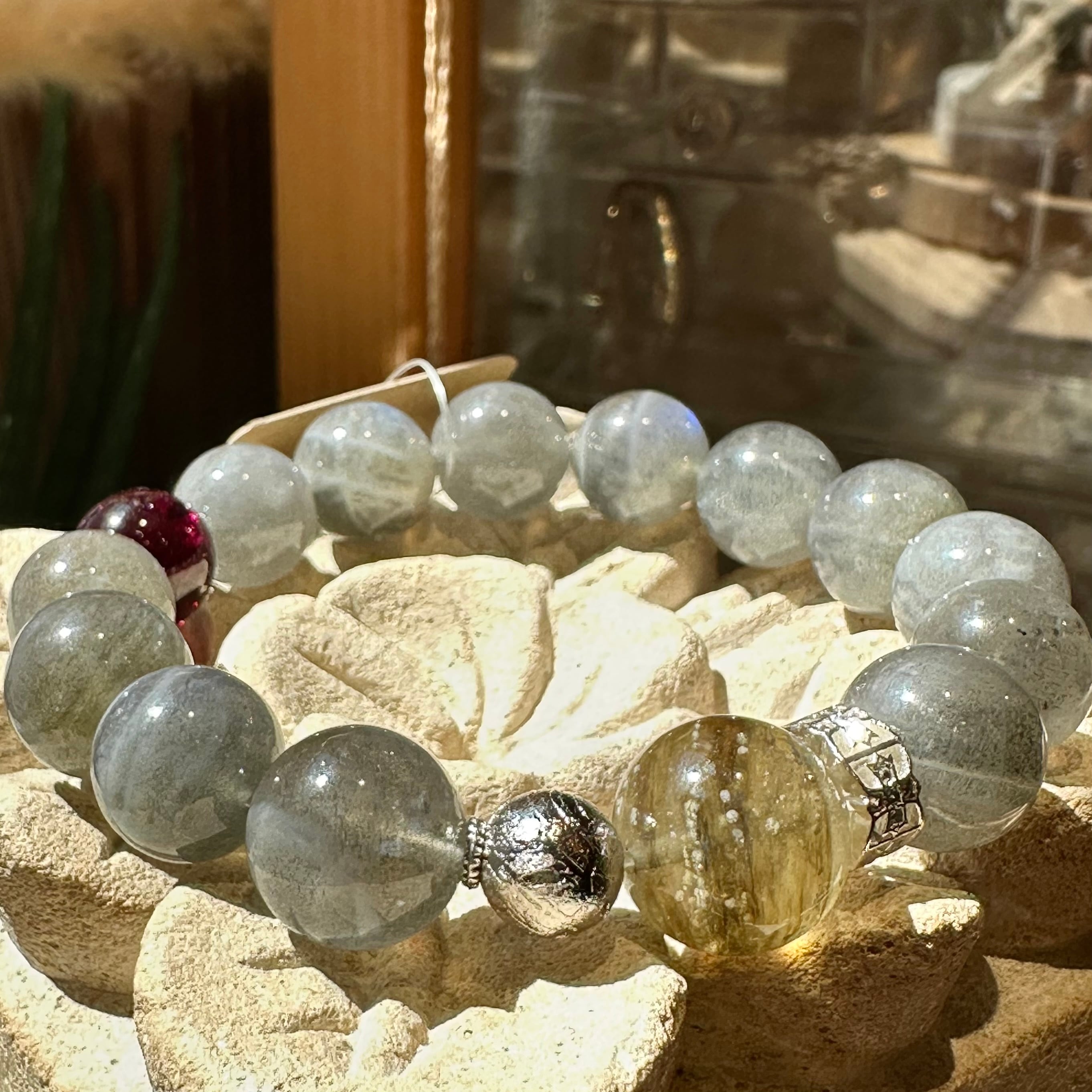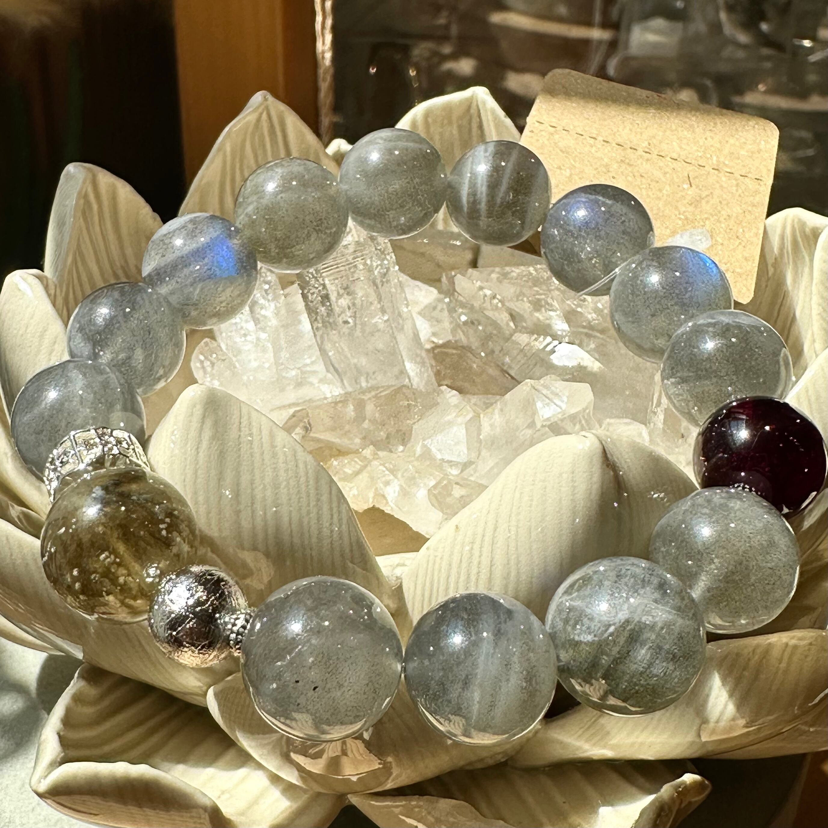 ◇ラブラドライト&ギベオン&ブラックリビアングラス&ロードライトガーネット◇デザインブレスレット259-dbrs-labrlgrg-01b-c01