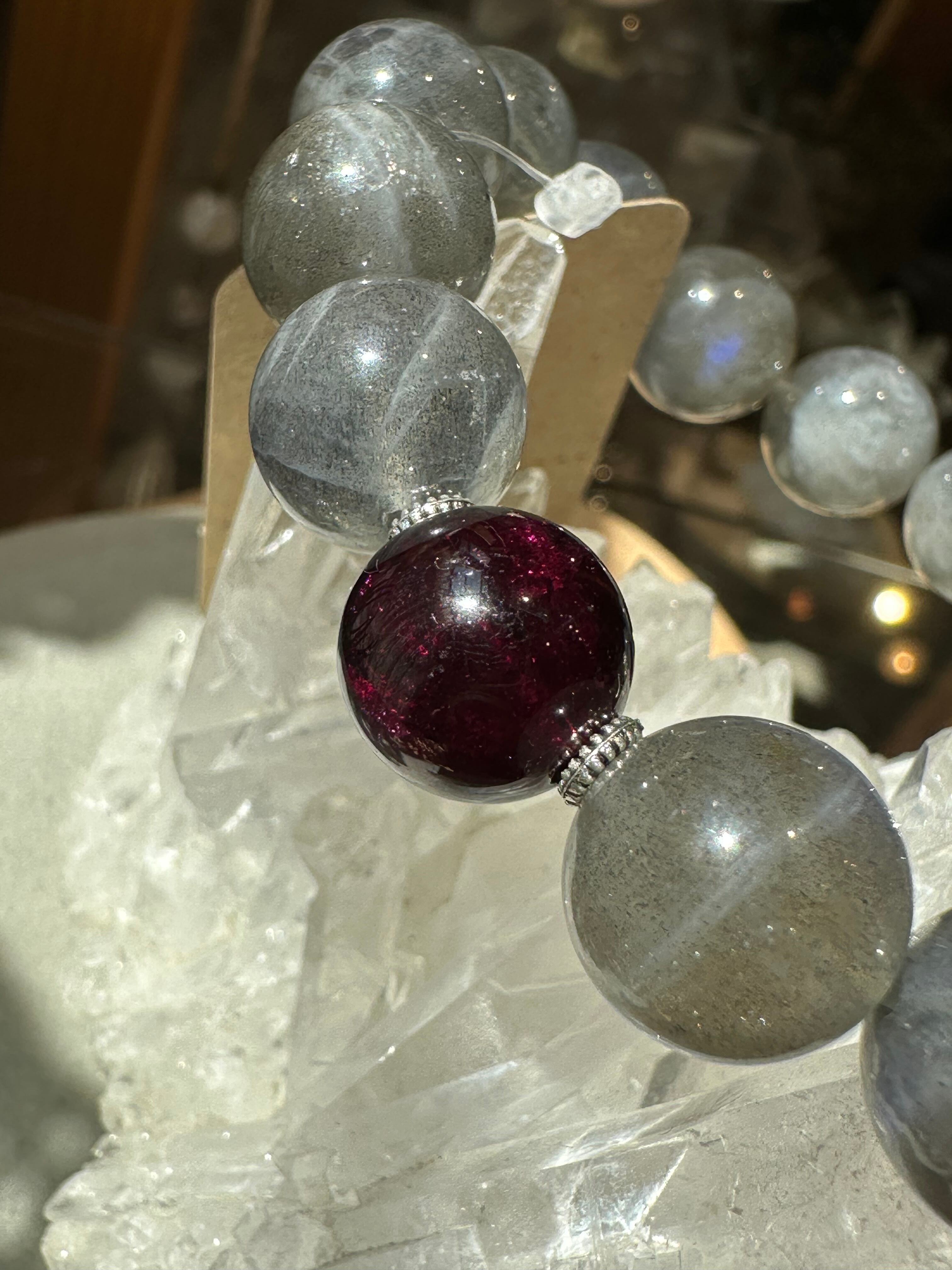 ロードライトガーネットが入ったデザインブレスレットです♪