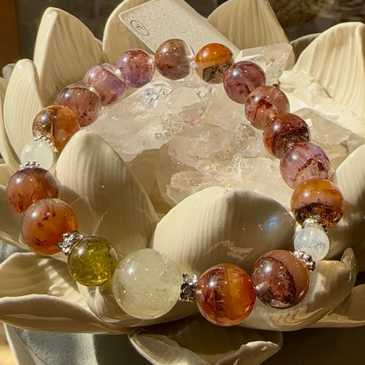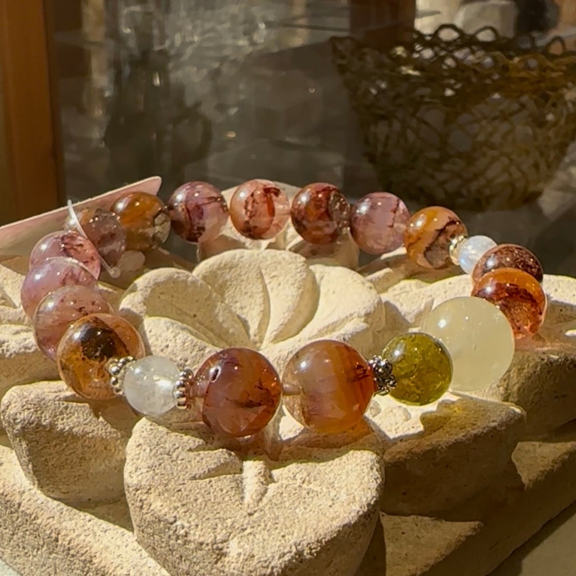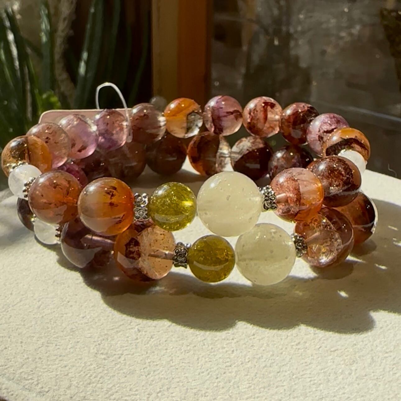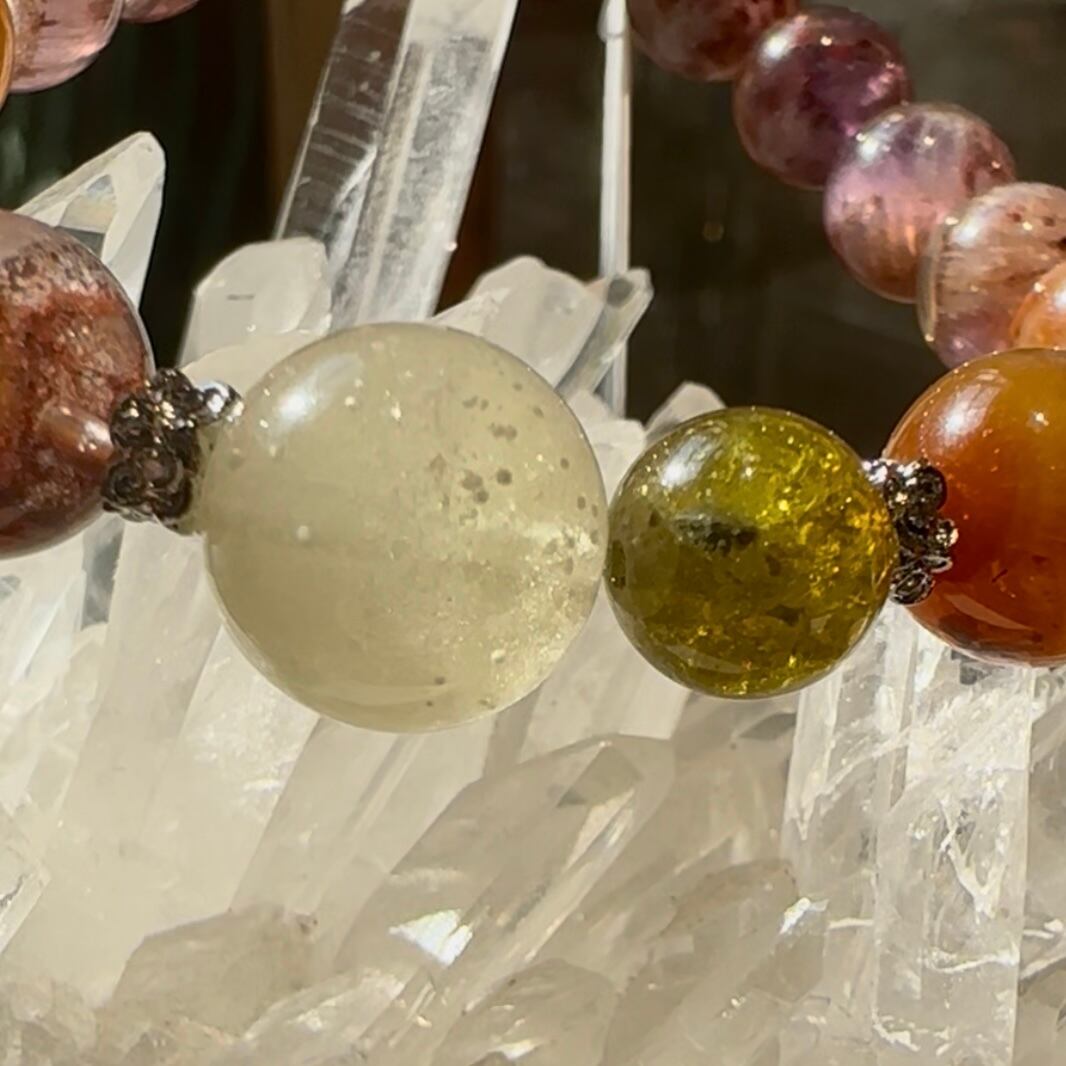 独特な色合いのオーラライト23をベースに、リビアングラス、ホワイトラブラドライト