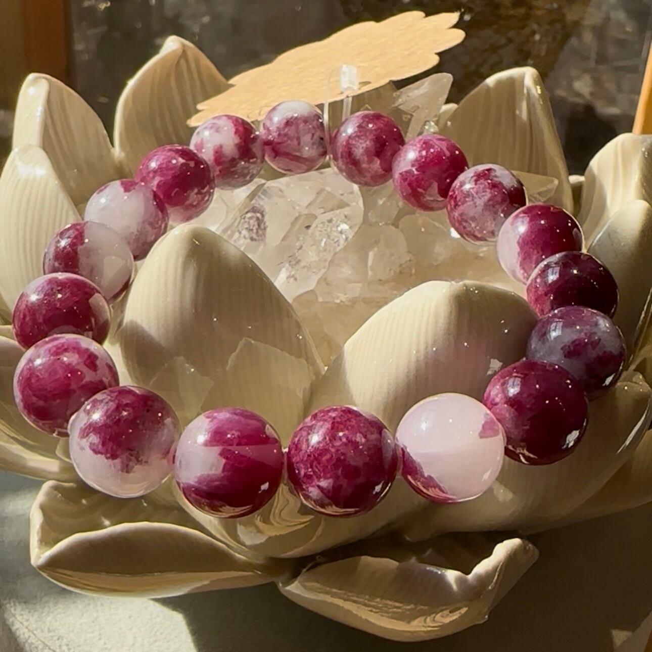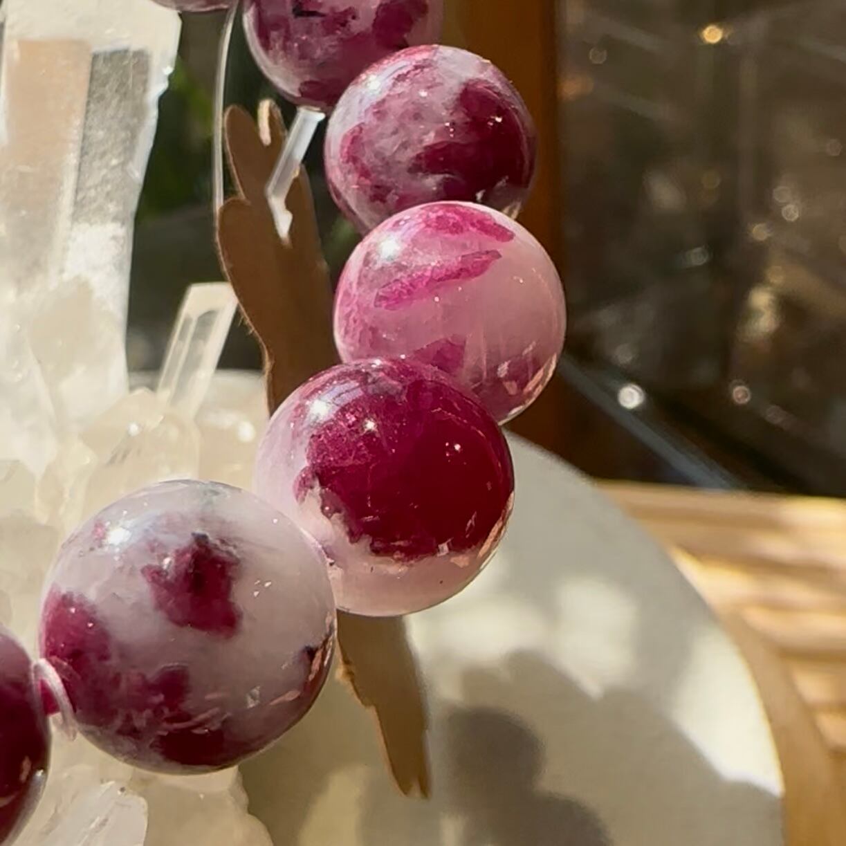 石英にルビーが共生している珍しい石です。ハートチャクラを活性し穏やかで前向きな気持ちで