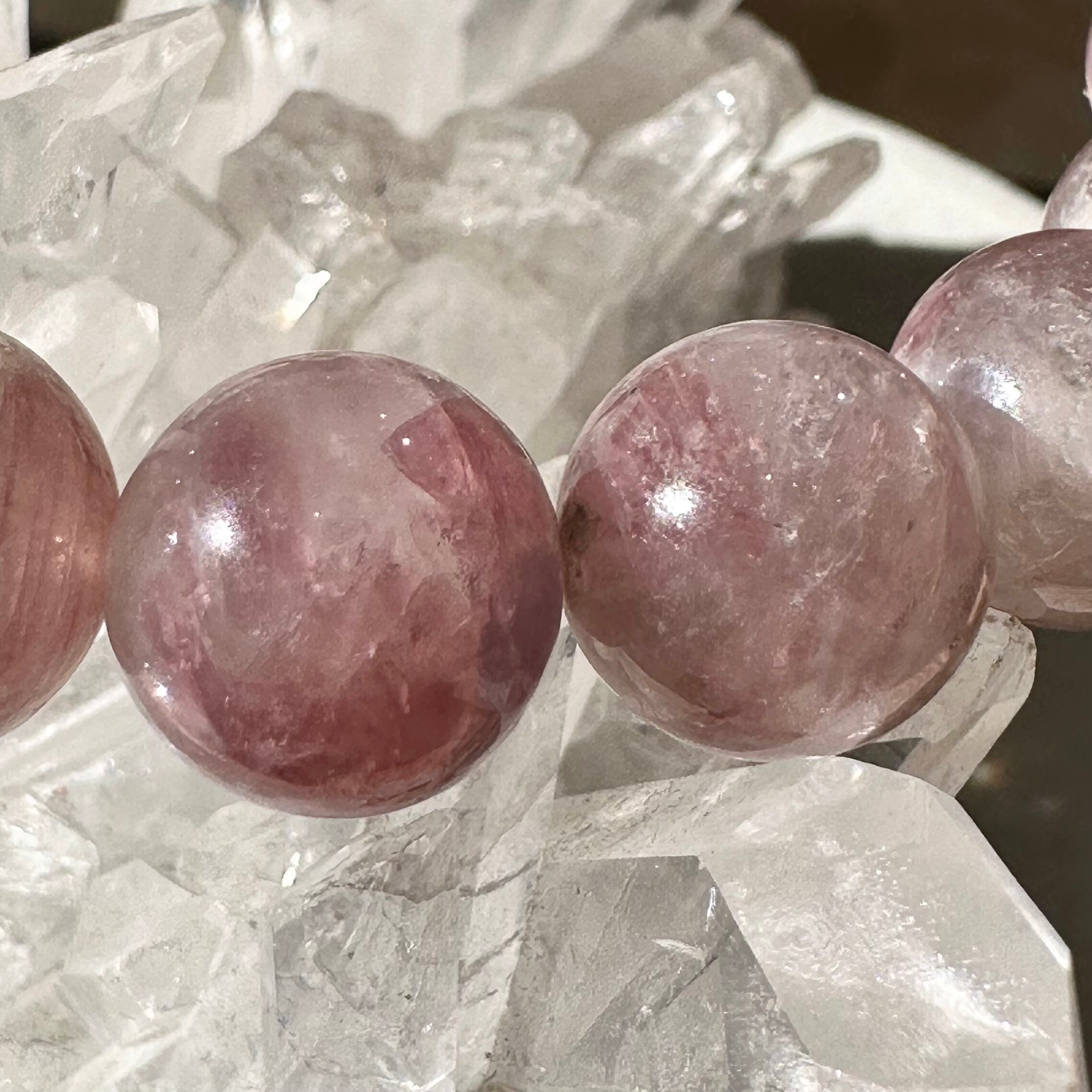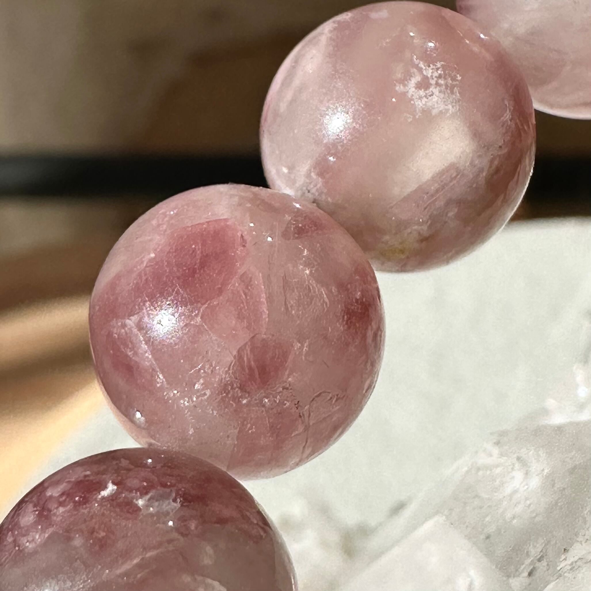 ピンクトルマリンが艶々と 透明感のあるシリカに浮かぶ トルマリンシリカ。