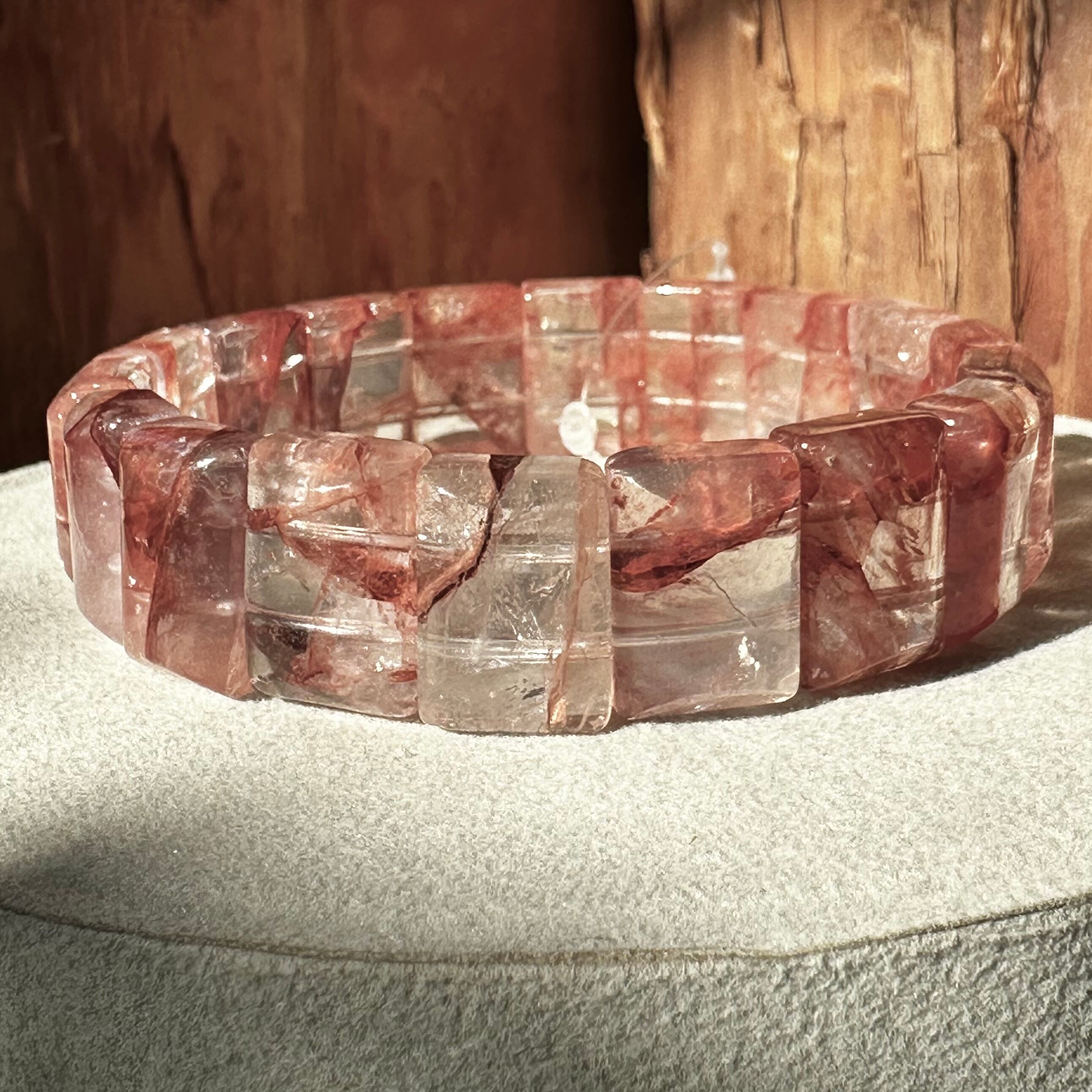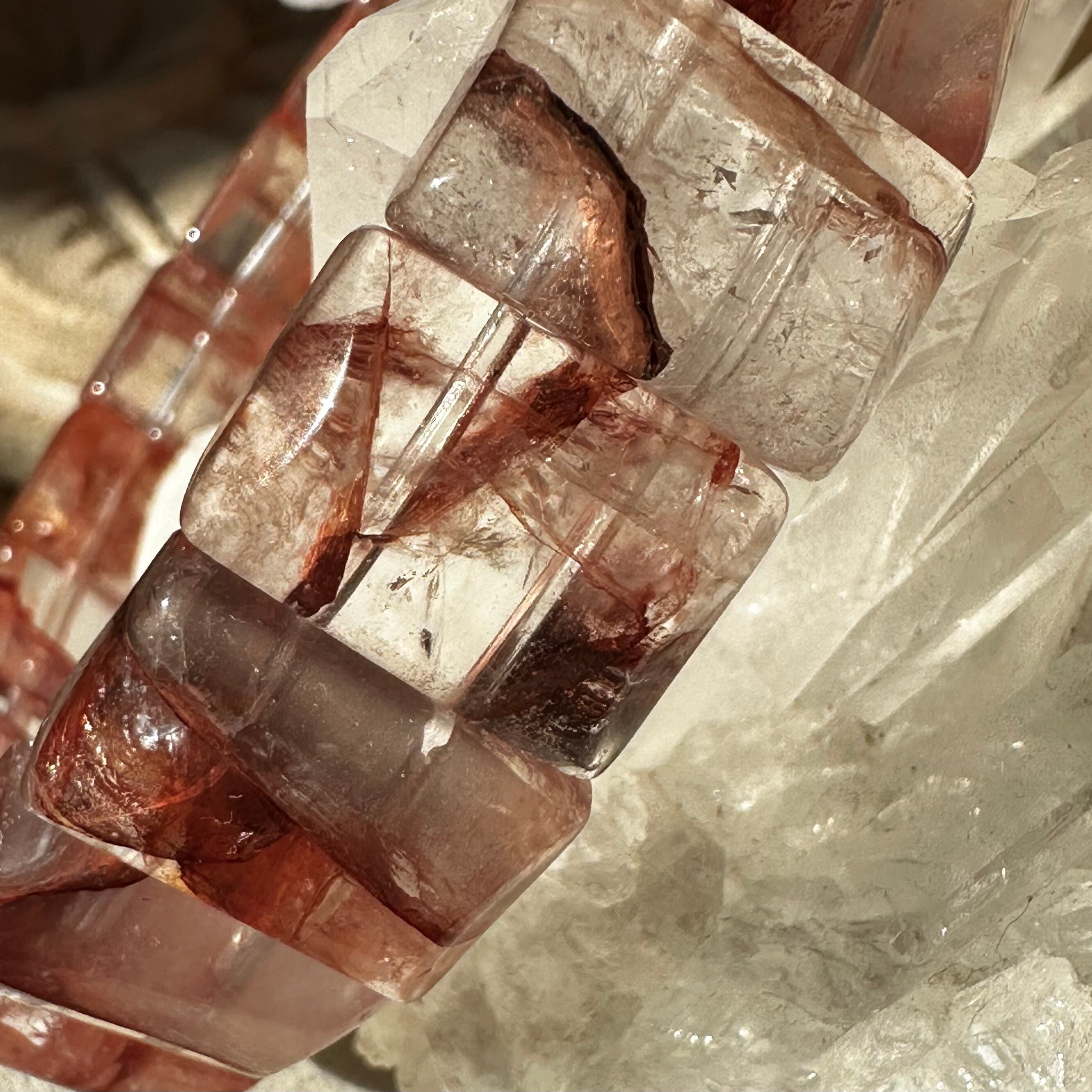 ライモナイトの鮮やかな美しいカラーの内包物 そこにヘマタイトも内包されているビーズ達・・・