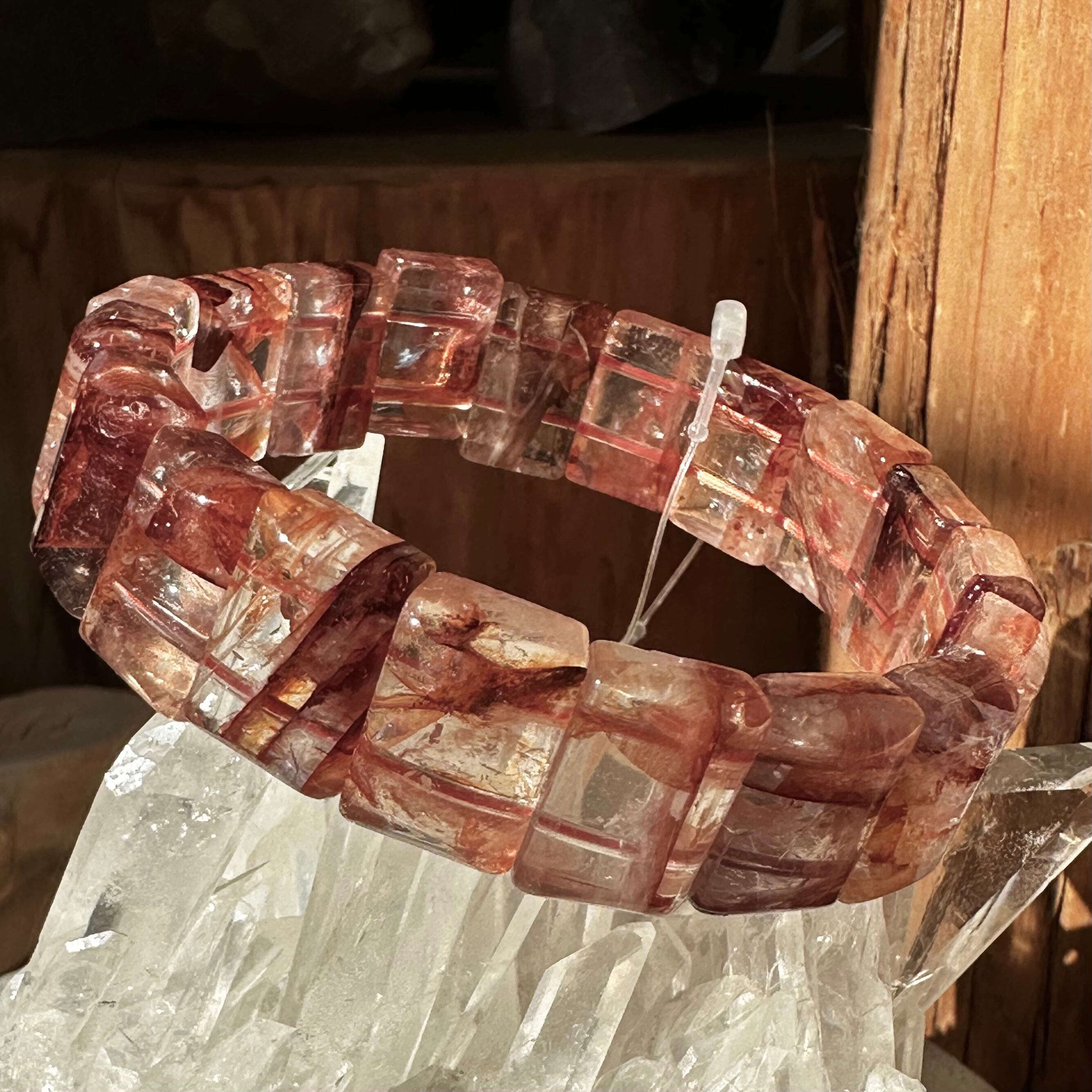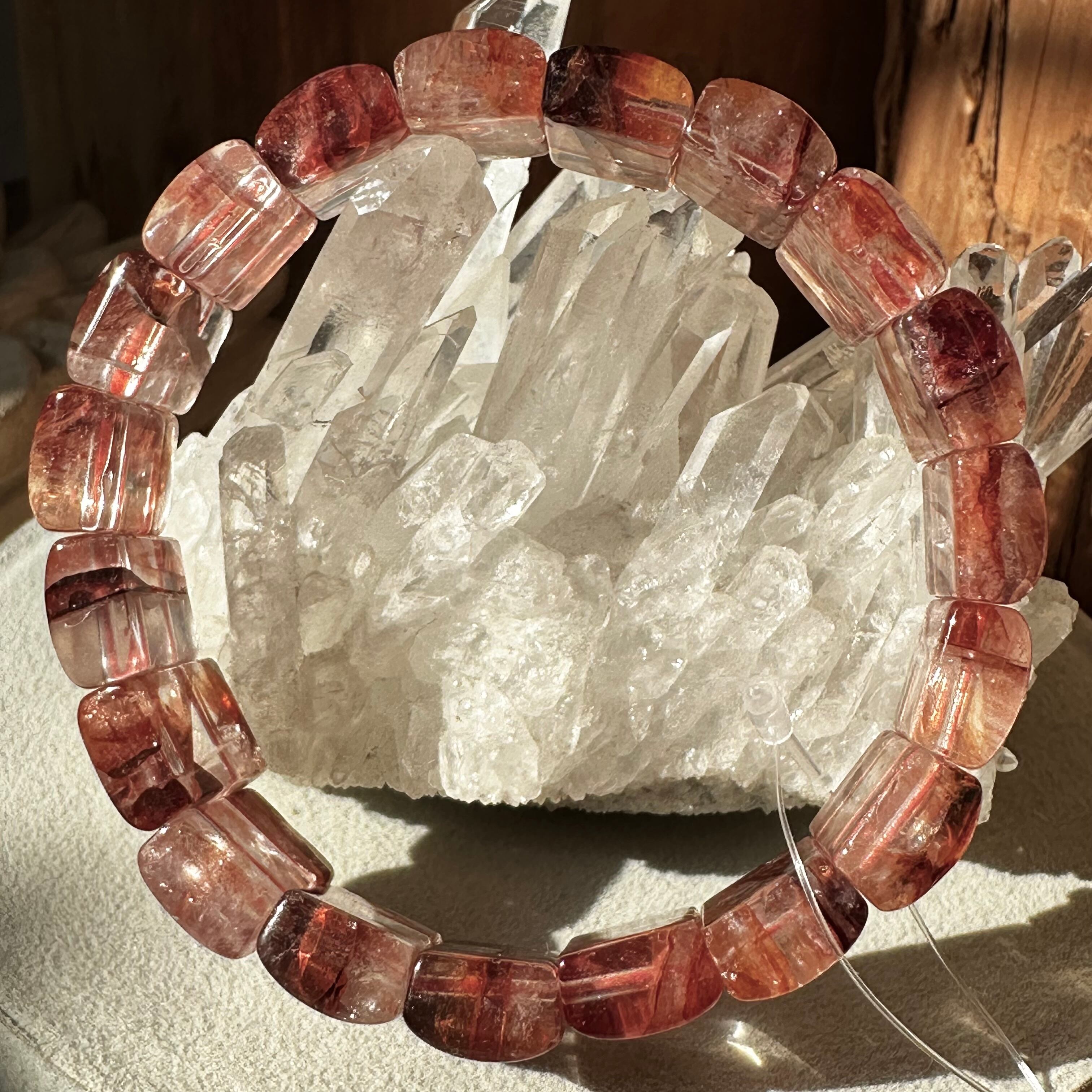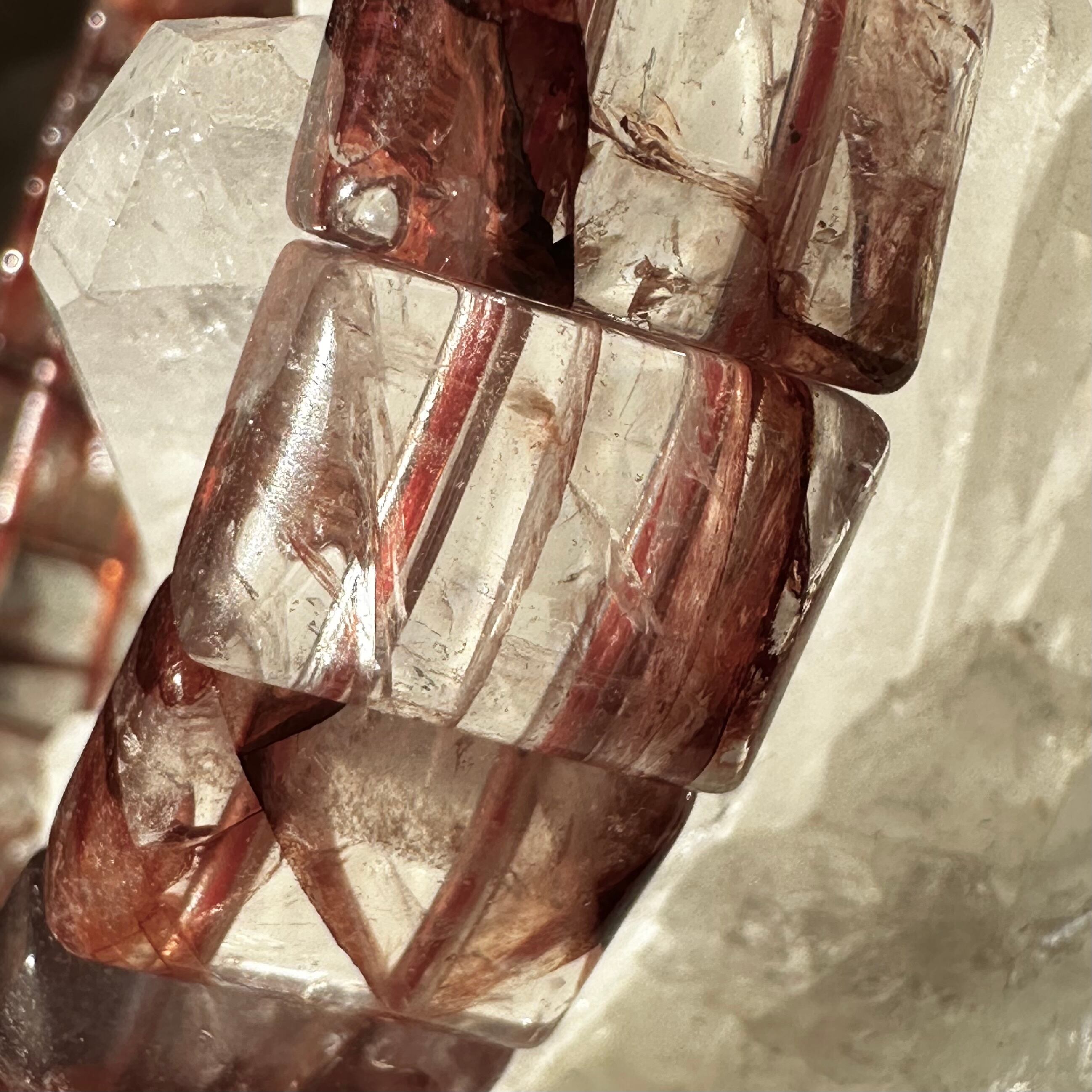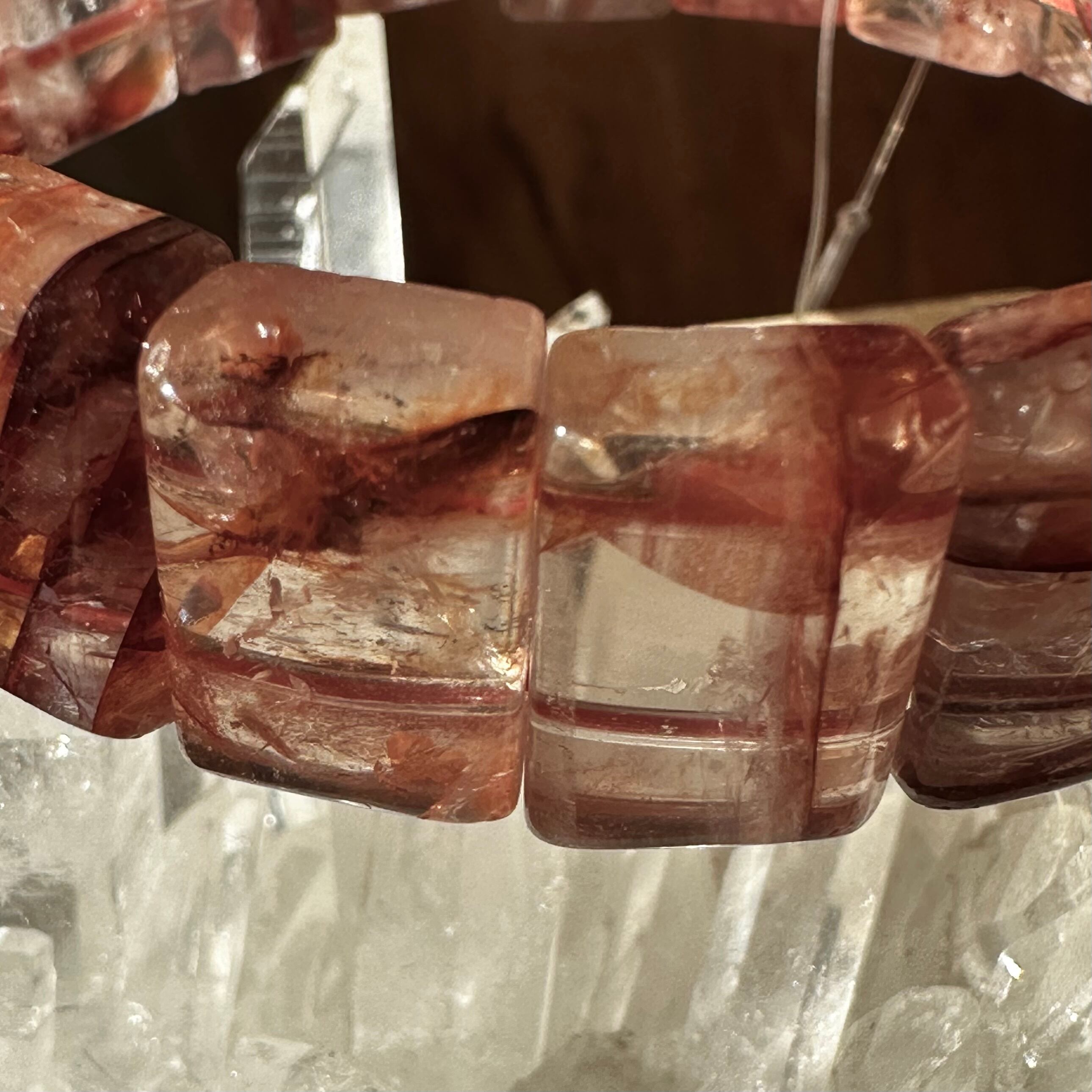 ライモナイトの鮮やかな美しいカラーの内包物 そこにヘマタイトも内包されているビーズ達・・・