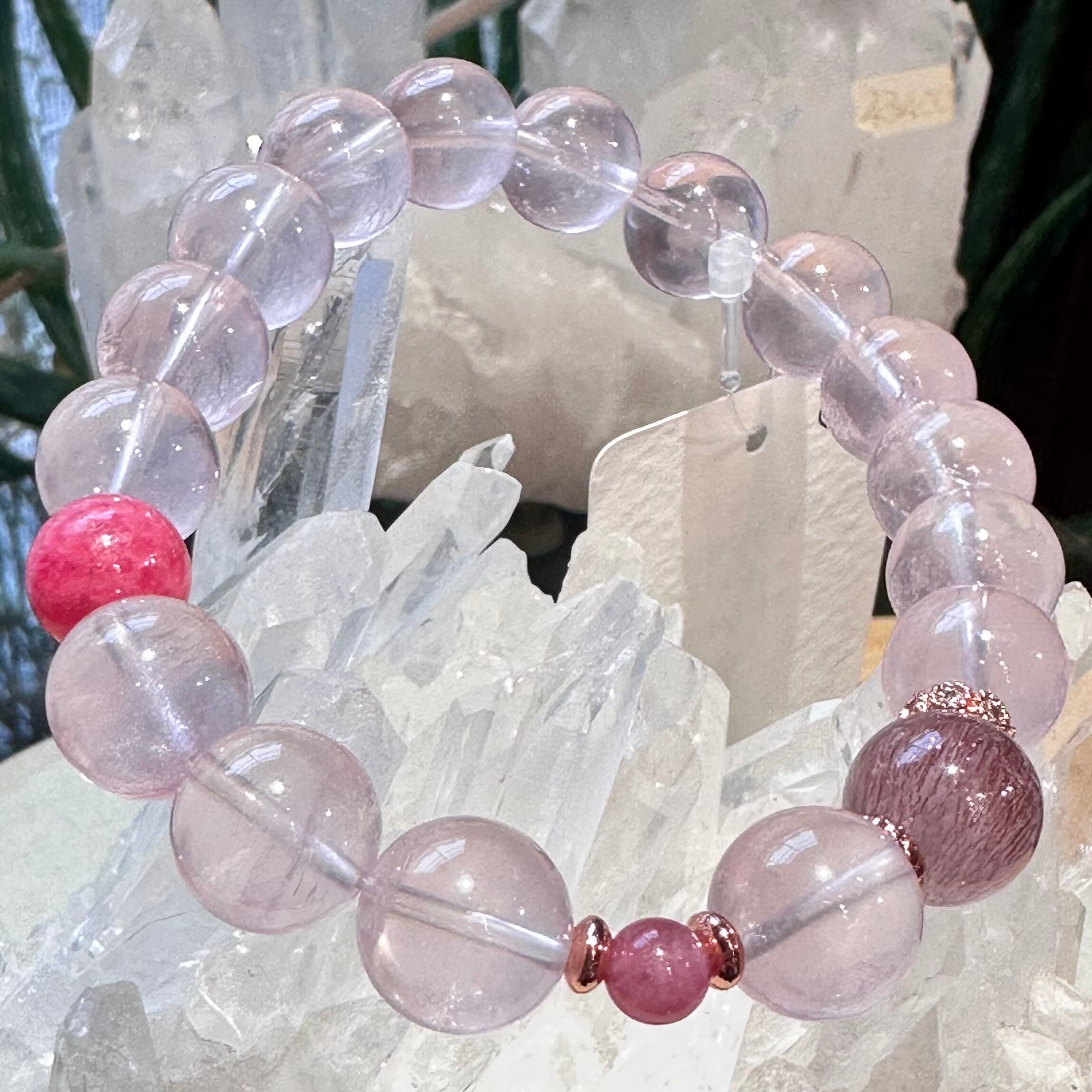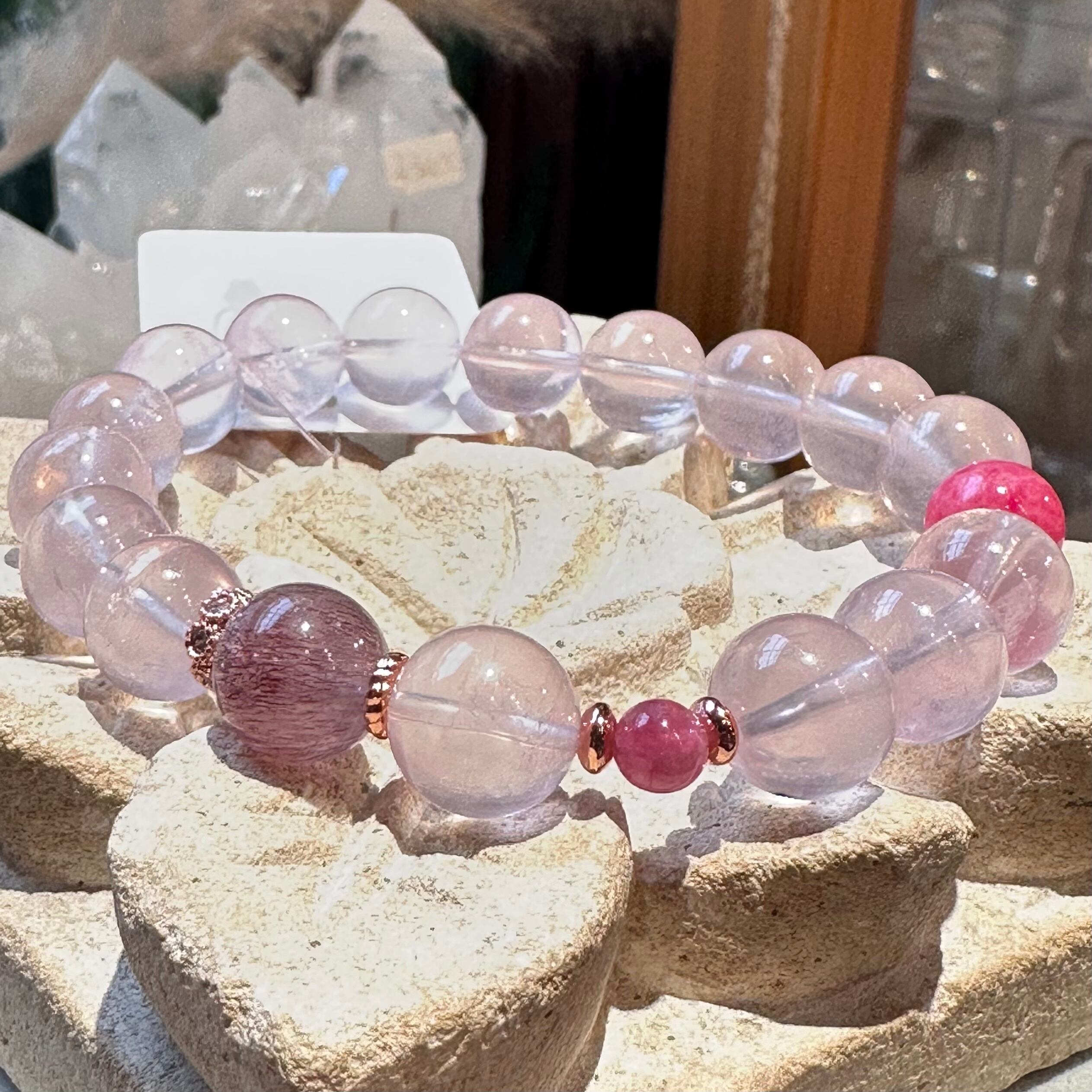 ◇ピンク・パープルジラソル&レッドセイクリッドセブン&ピンクトルマリン&ロードナイト◇デザインブレスレット2512-db-jrsctrro-01b-c01