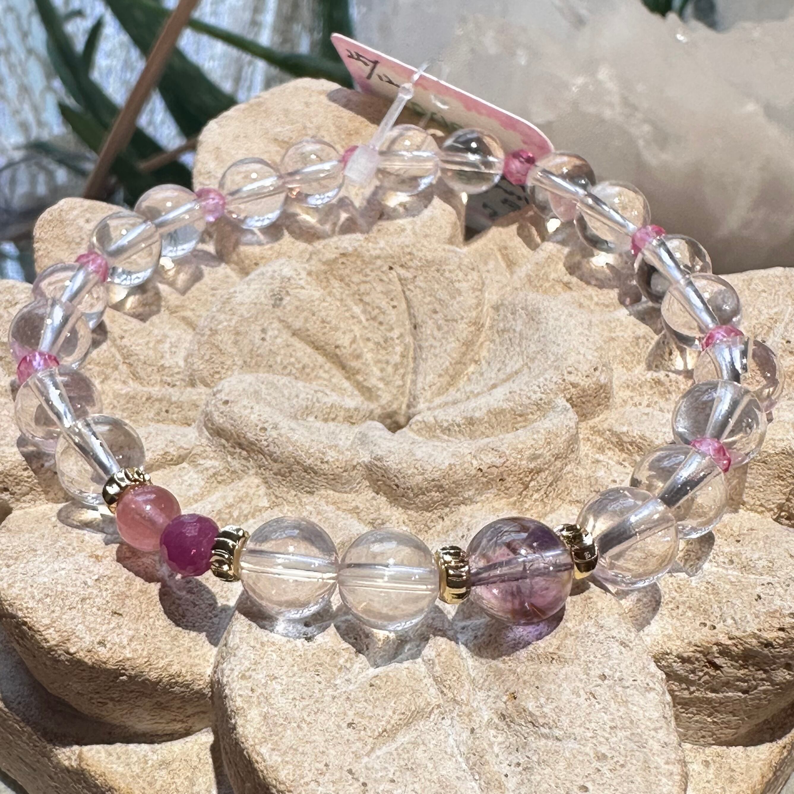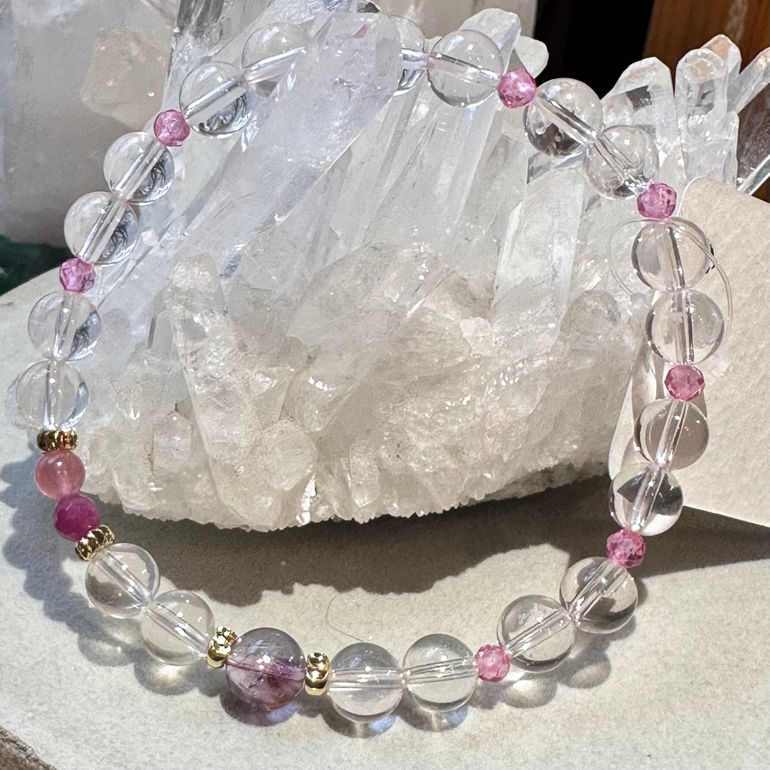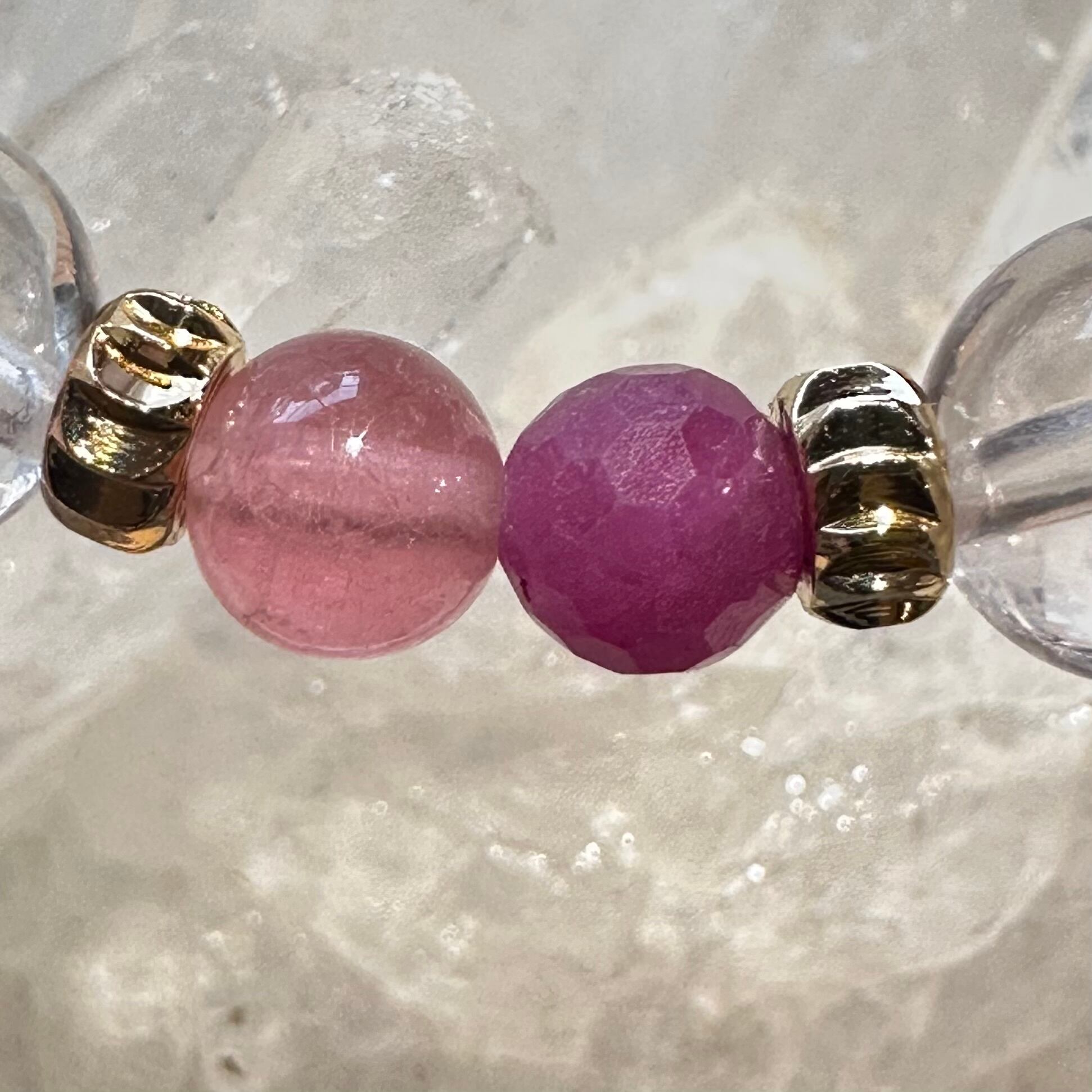 ◇スターローズクォーツ&ピンクトパーズ&アメジストエレスチャル&ルビー&ピンクトルマリン◇デザインブレスレット2512-db-srptaerbpt-01b-c01