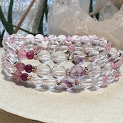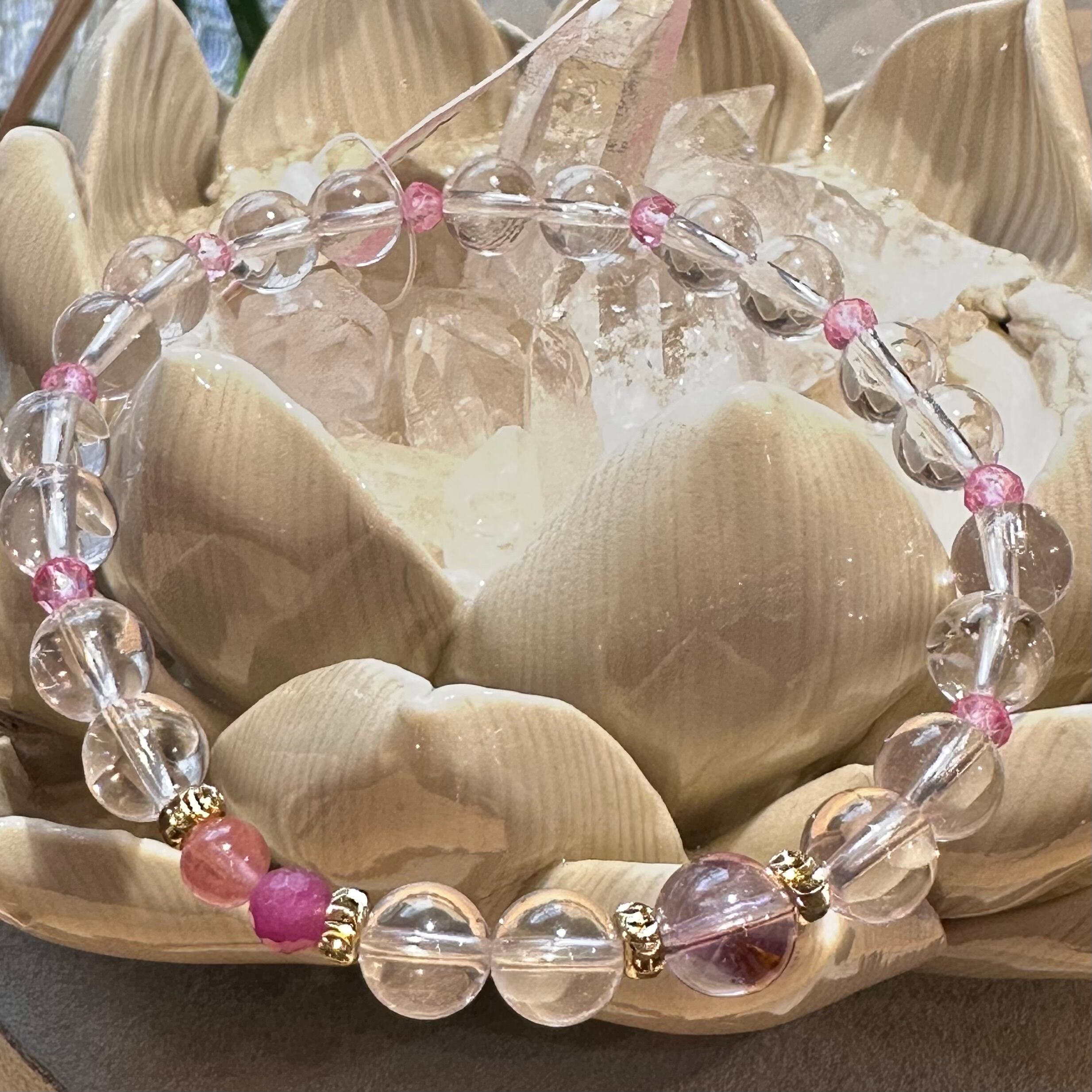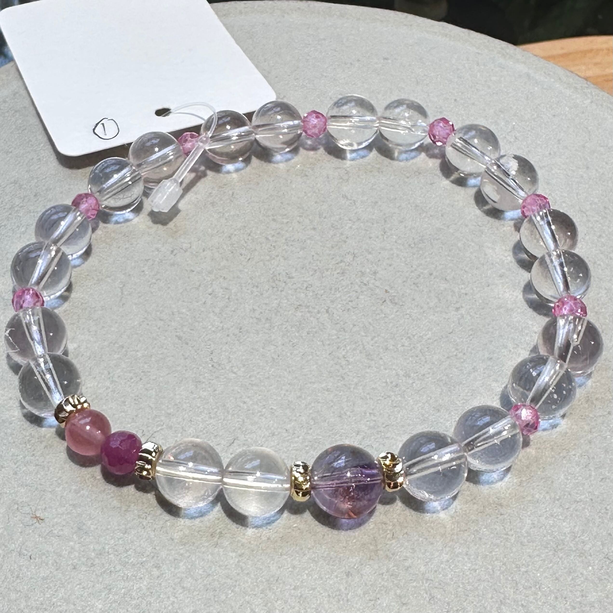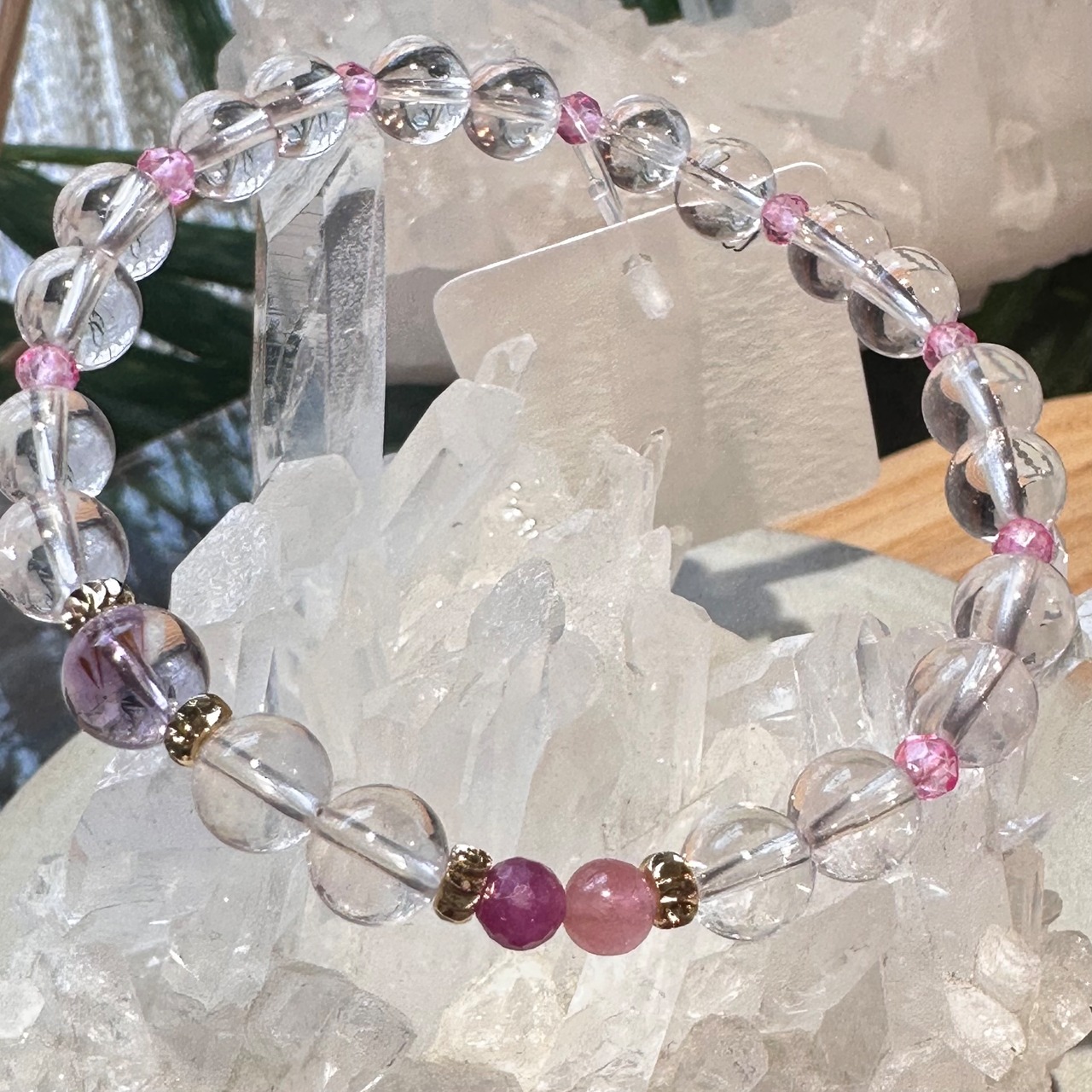 ◇スターローズクォーツ&ピンクトパーズ&アメジストエレスチャル&ルビー&ピンクトルマリン◇デザインブレスレット2512-db-srptaerbpt-01b-c01