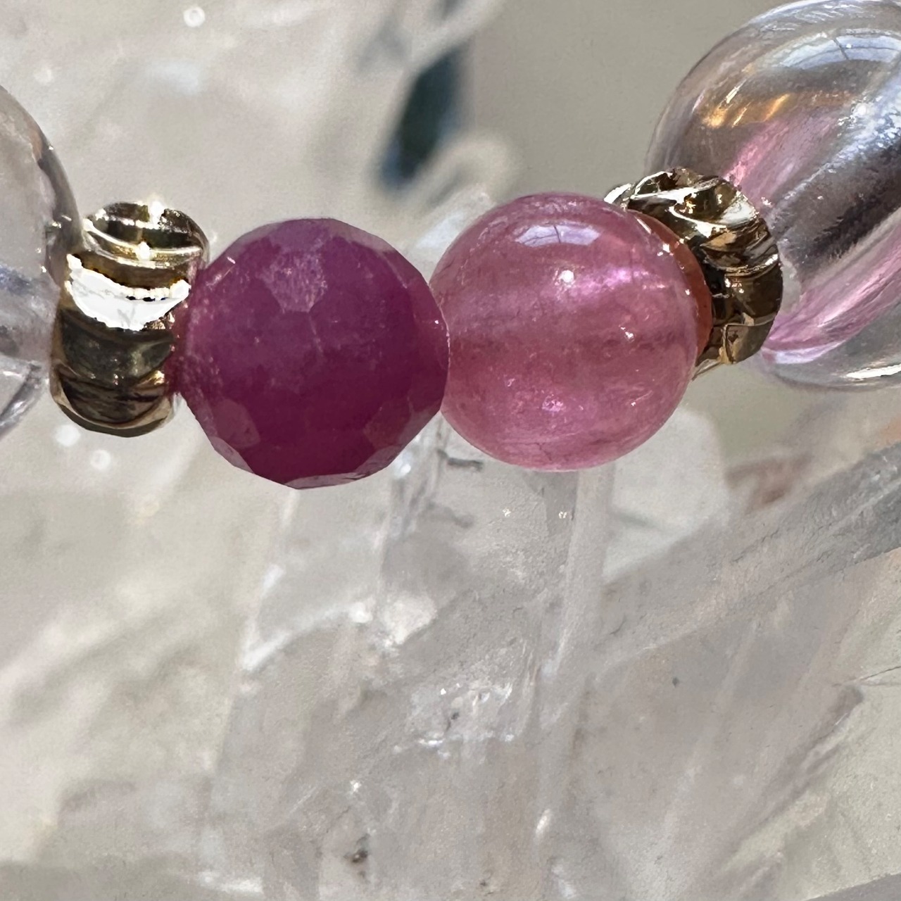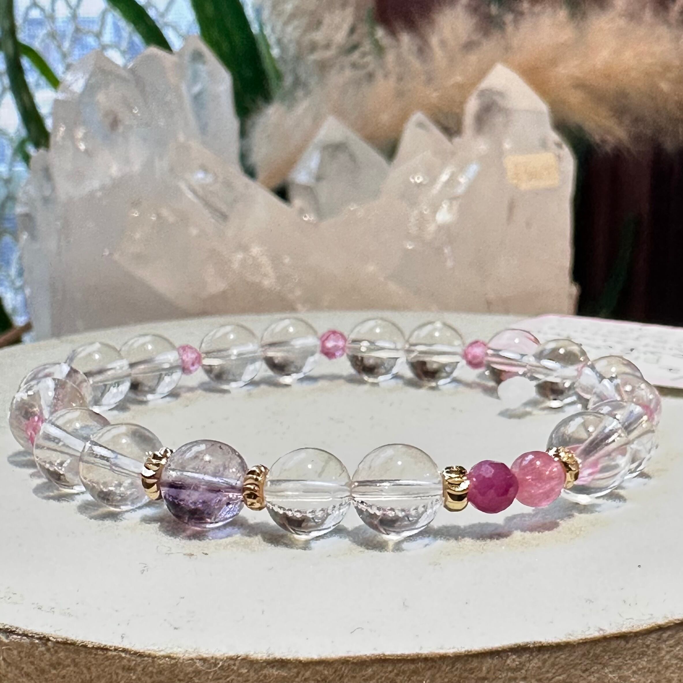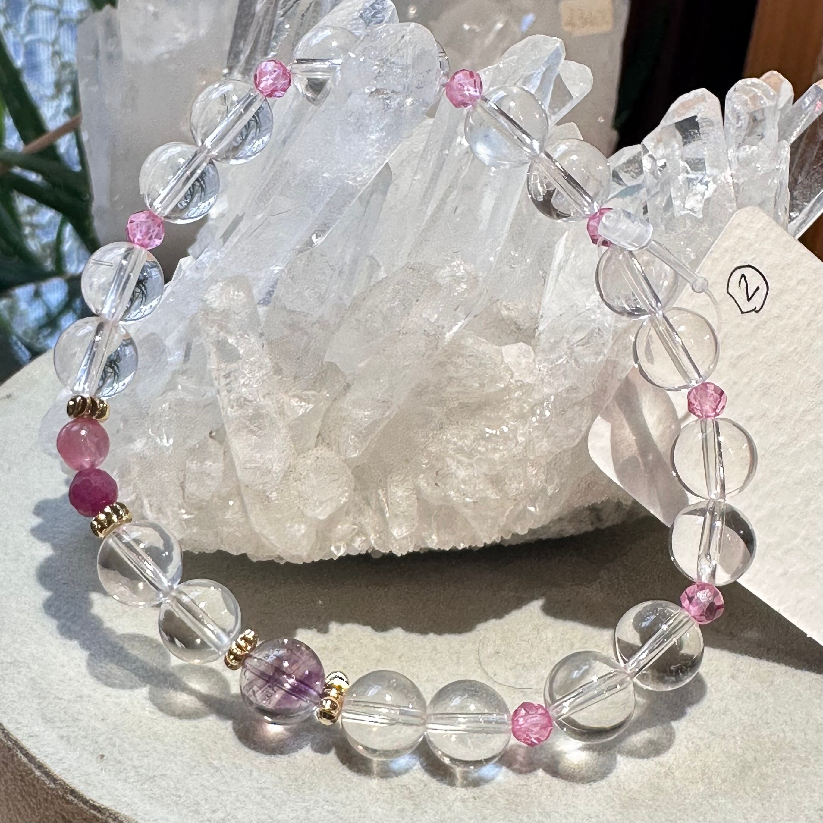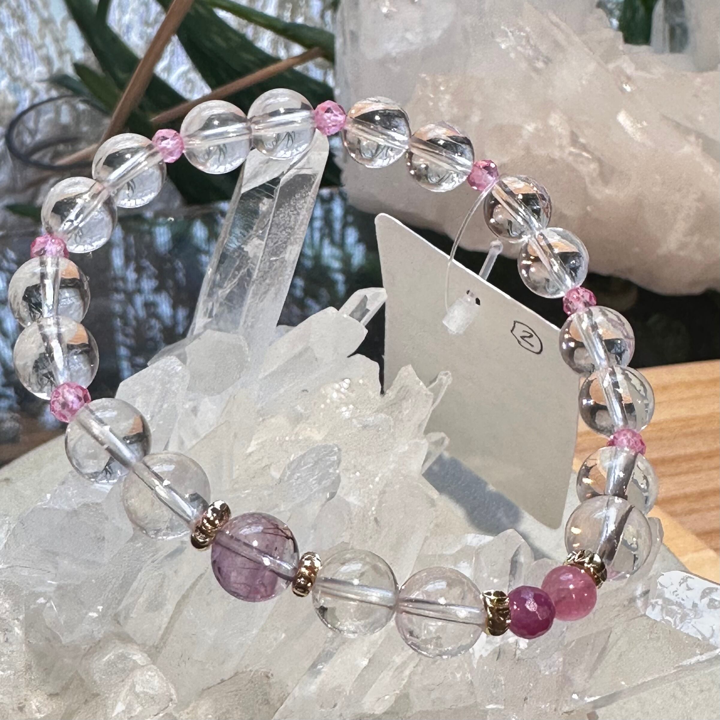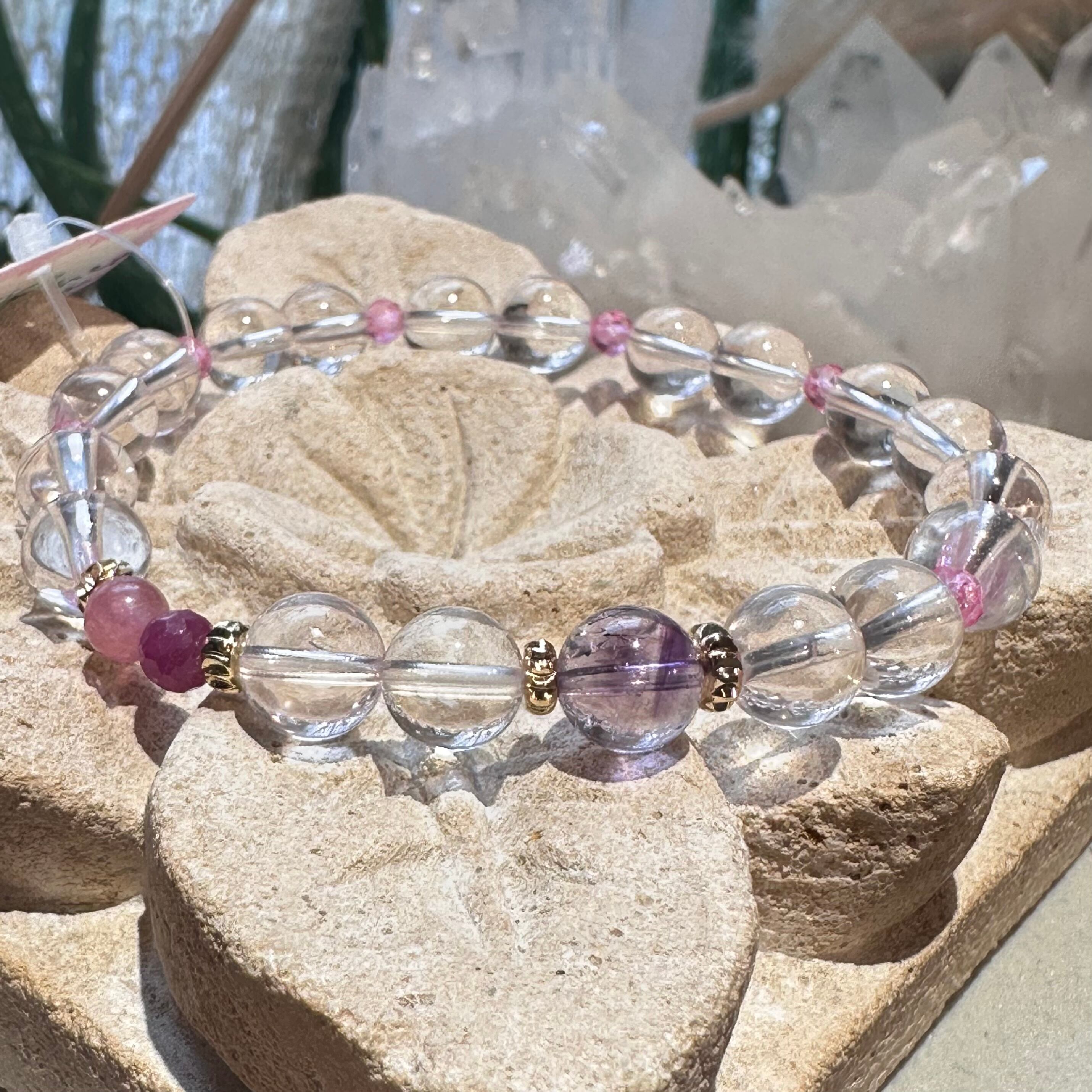 ◇スターローズクォーツ&ピンクトパーズ&アメジストエレスチャル&ルビー&ピンクトルマリン◇デザインブレスレット2512-db-srptaerbpt-02b-c02