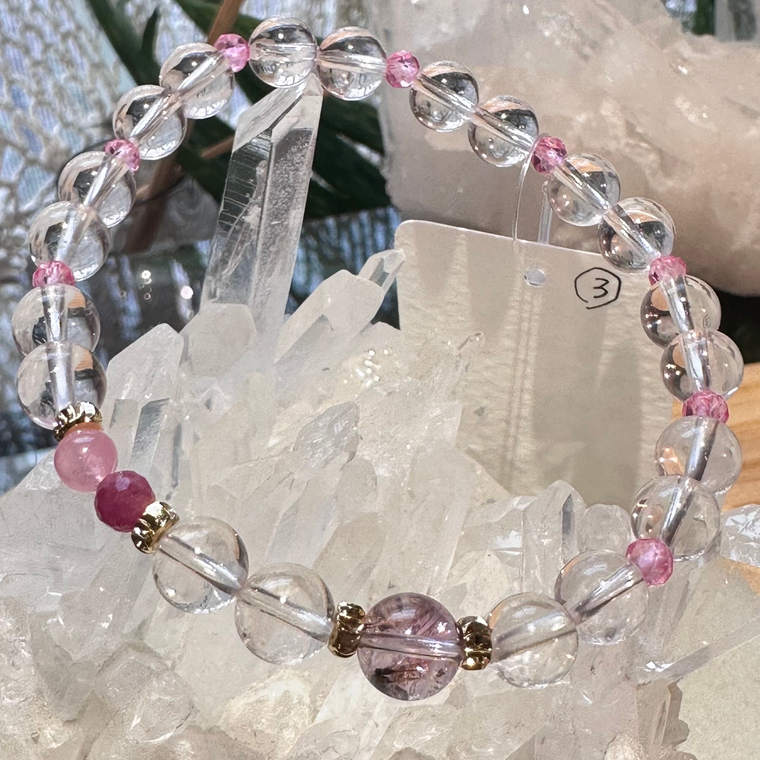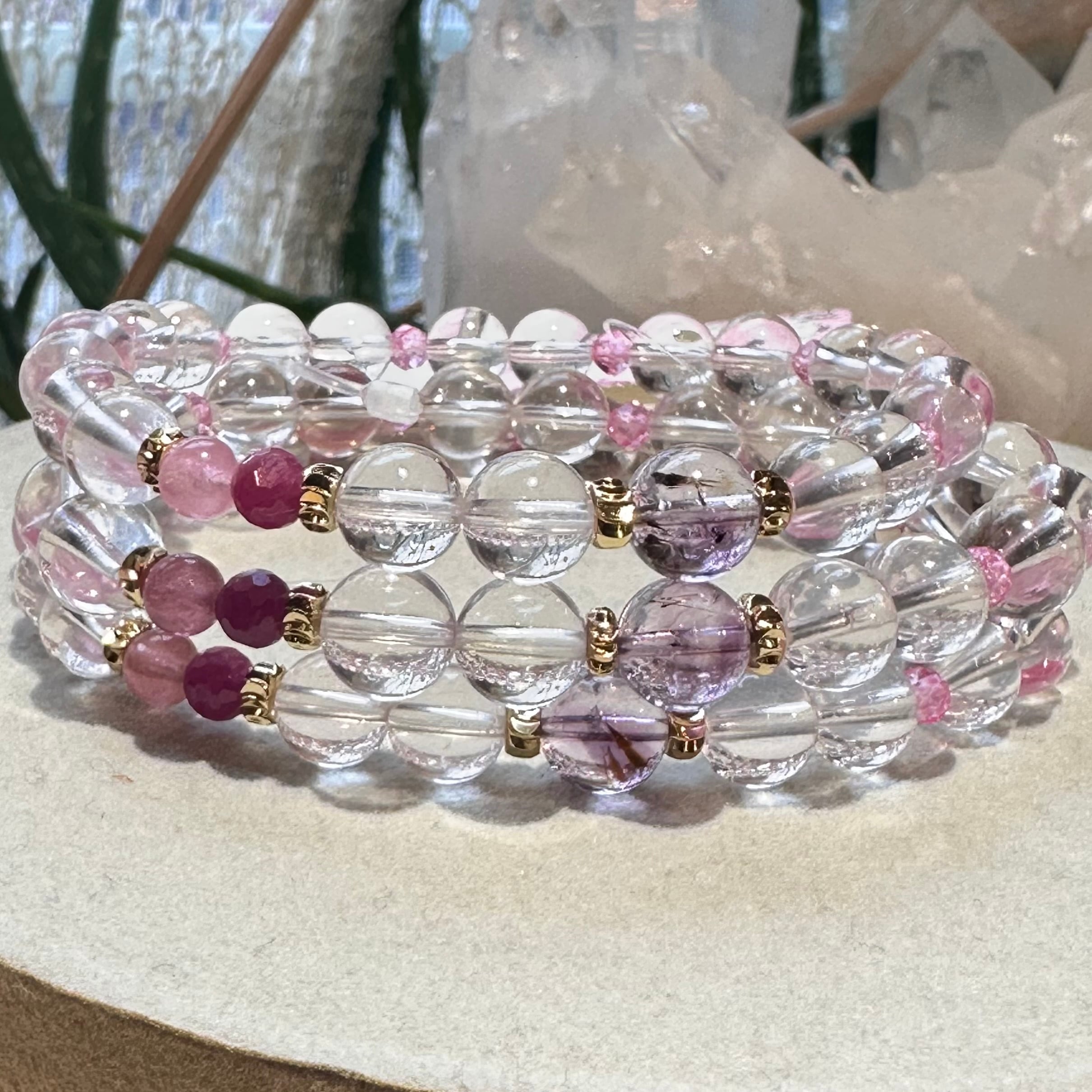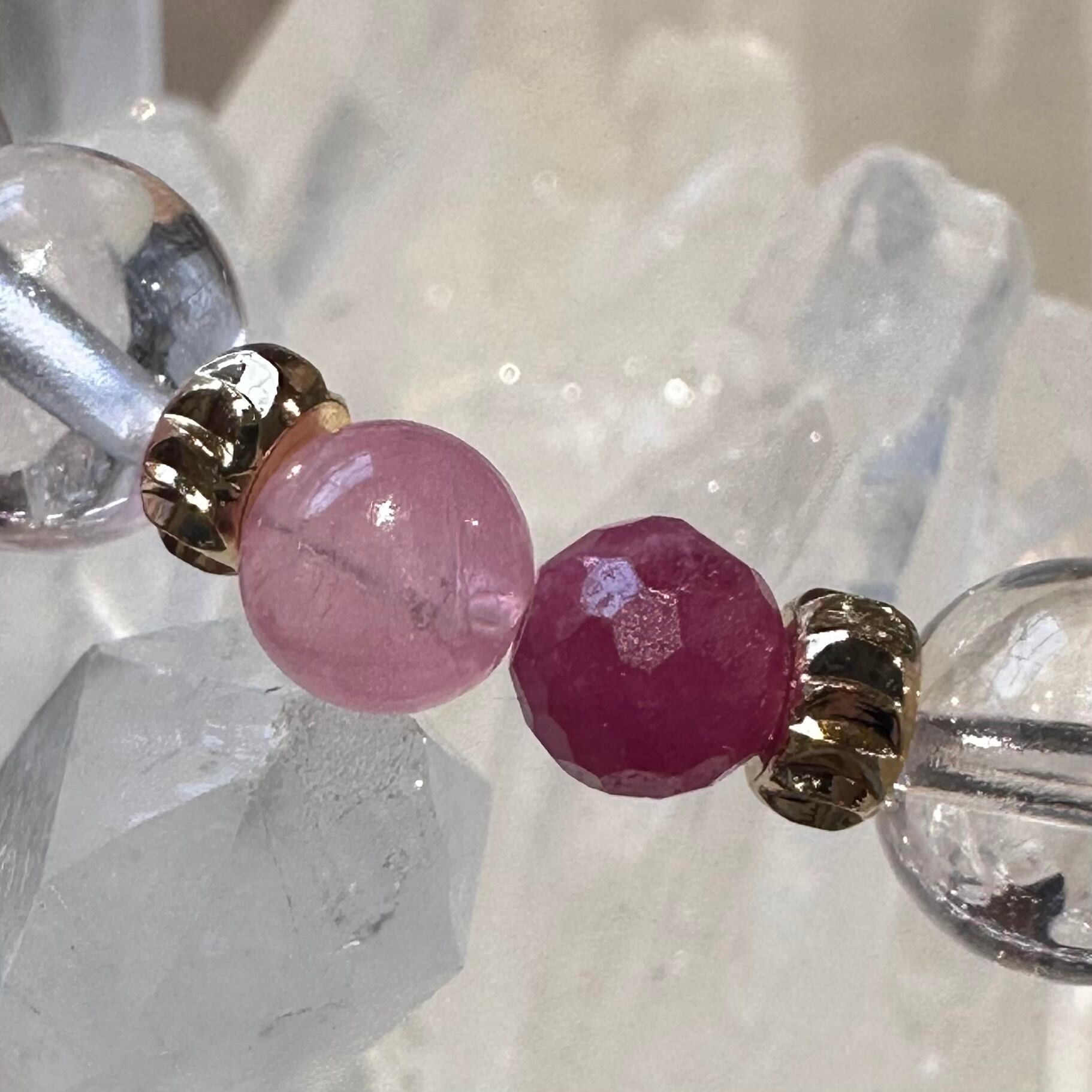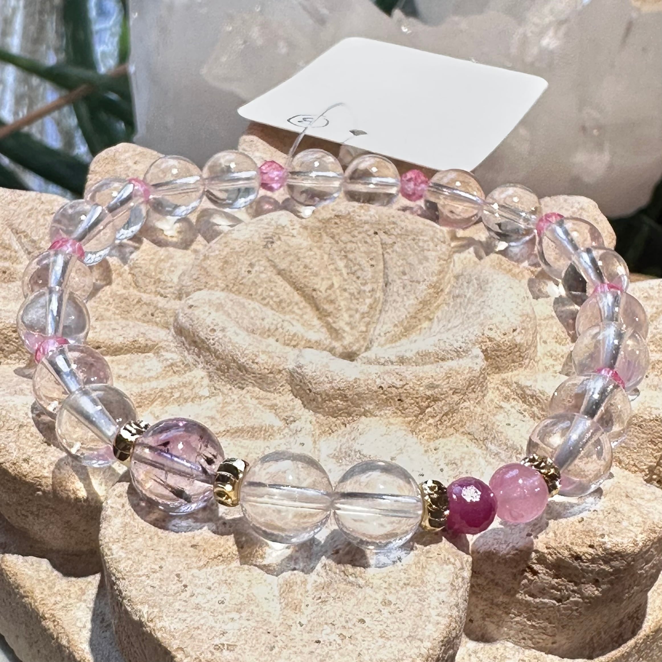 ◇スターローズクォーツ&ピンクトパーズ&アメジストエレスチャル&ルビー&ピンクトルマリン◇デザインブレスレット2512-db-srptaerbpt-03b-c03