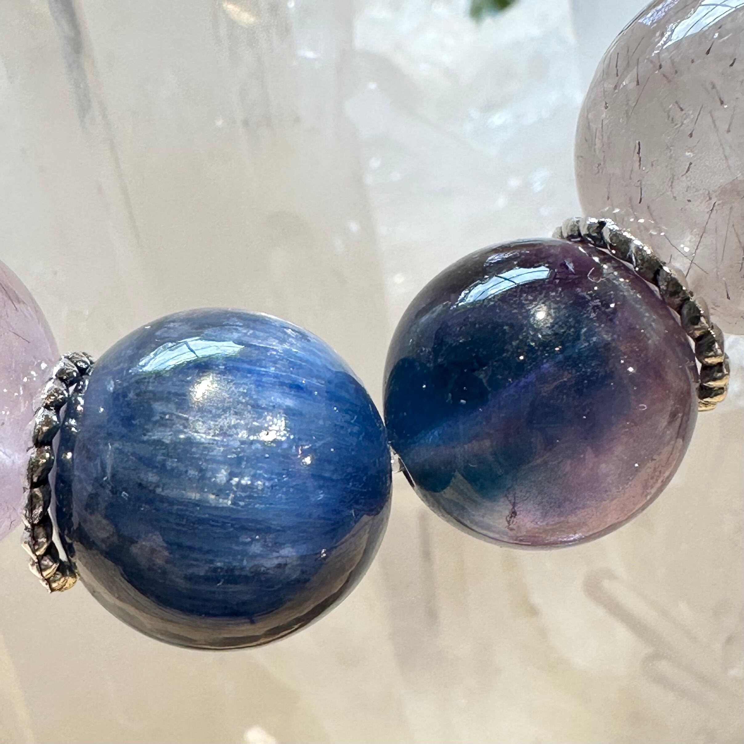 ◇セイクリッドセブン&ブラッドショット&フロライト&ブラックカヤナイト◇ブレスレット2603-brs-ssbfbK-14-01b-c01