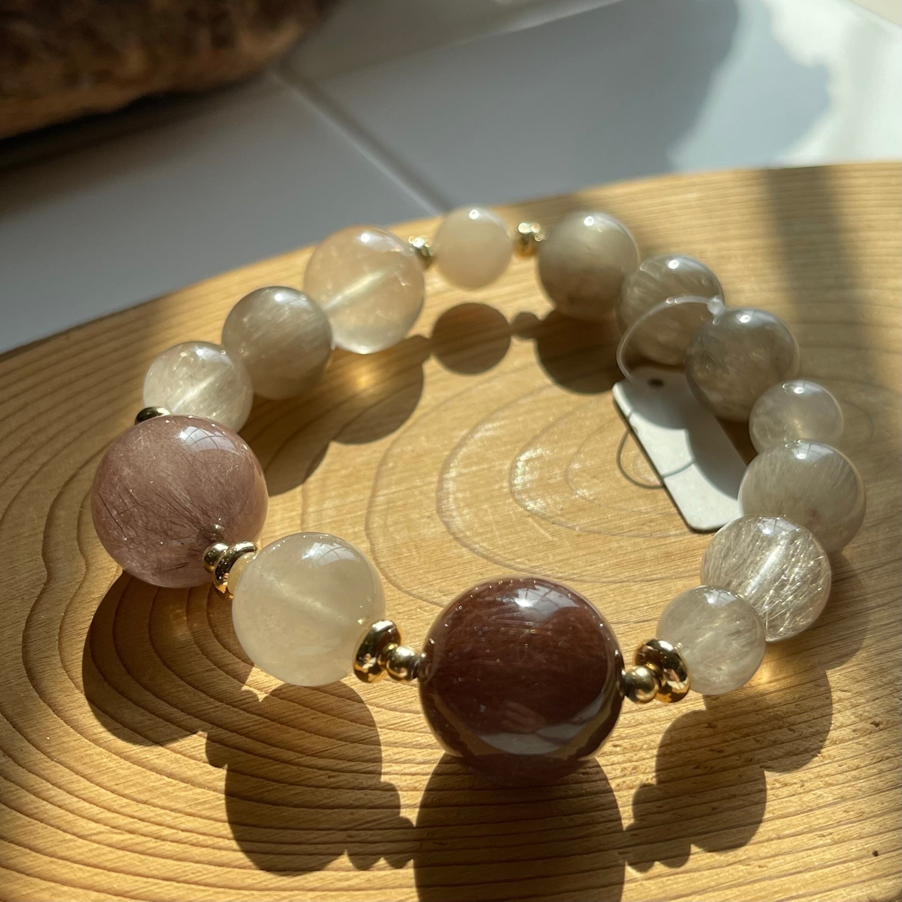 コーヒーカラーサゲニティッククォーツ&ホワイトサゲニティッククォーツデザインブレスレット02