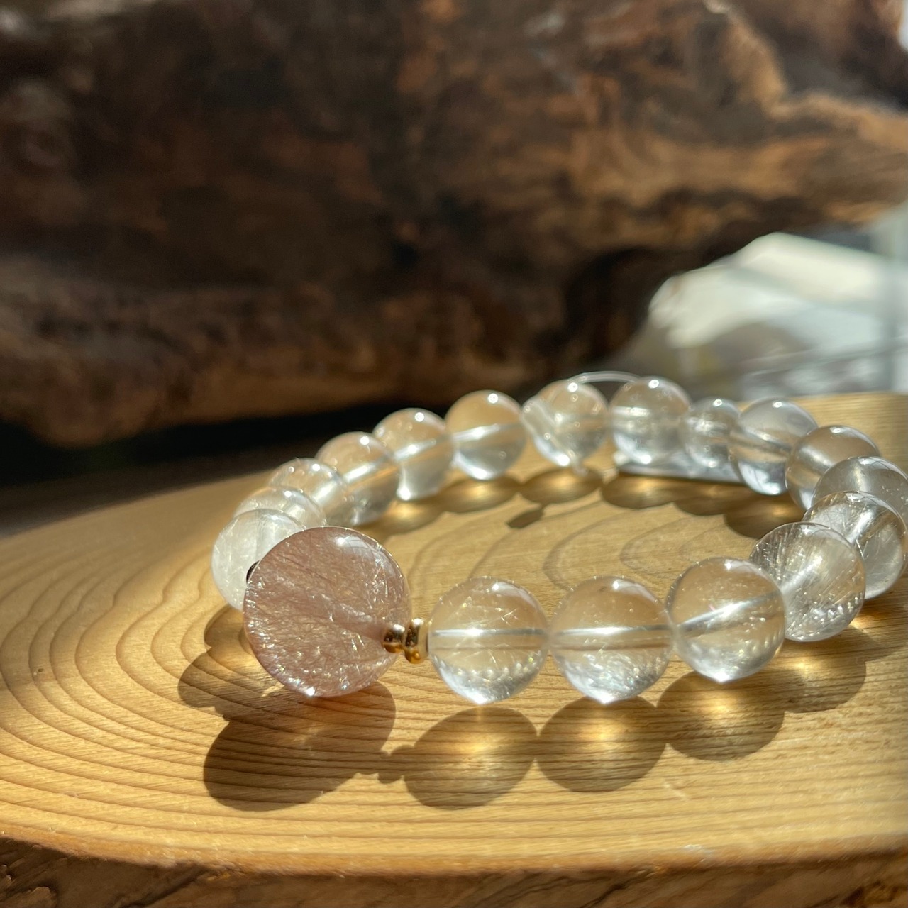 ピンクサゲニティッククォーツ&ホワイトサゲニティッククォーツデザインブレスレット02