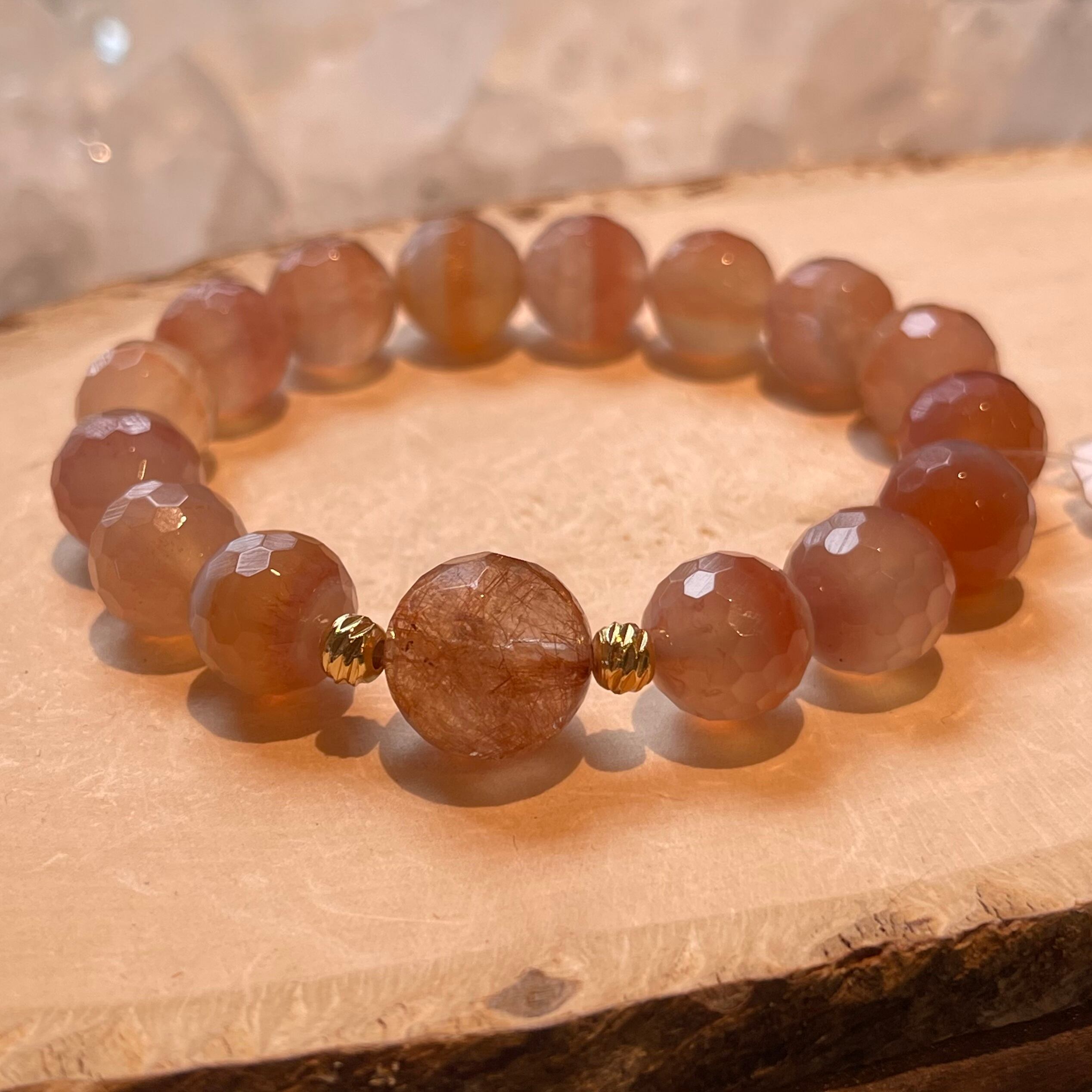 ライブ配信特別価格☆◇アゲート&コッパールチルクォーツ◇カットブレスレット04