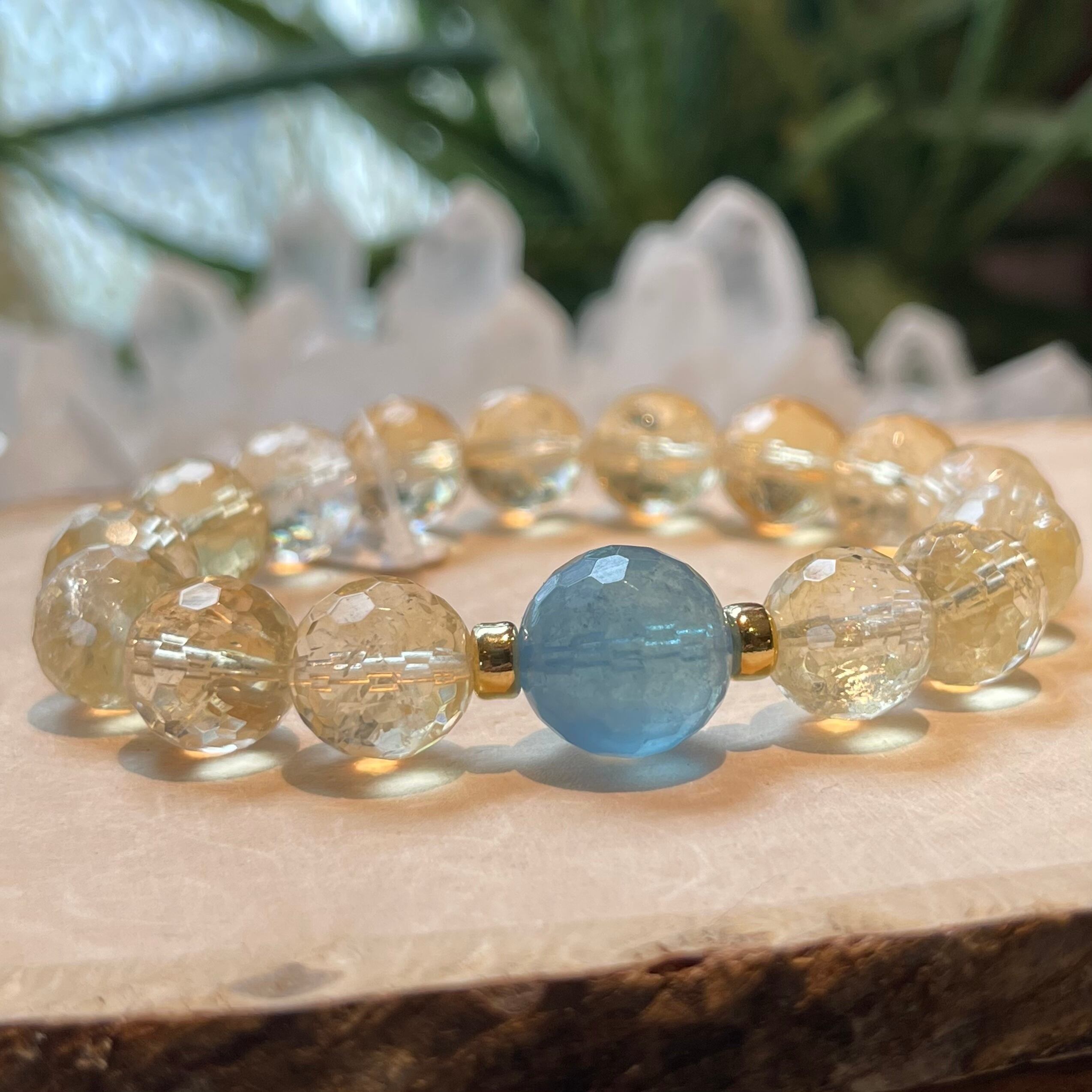 ライブ配信特別価格☆◇レインボーシトリン&アクアマリン◇カットブレスレット05