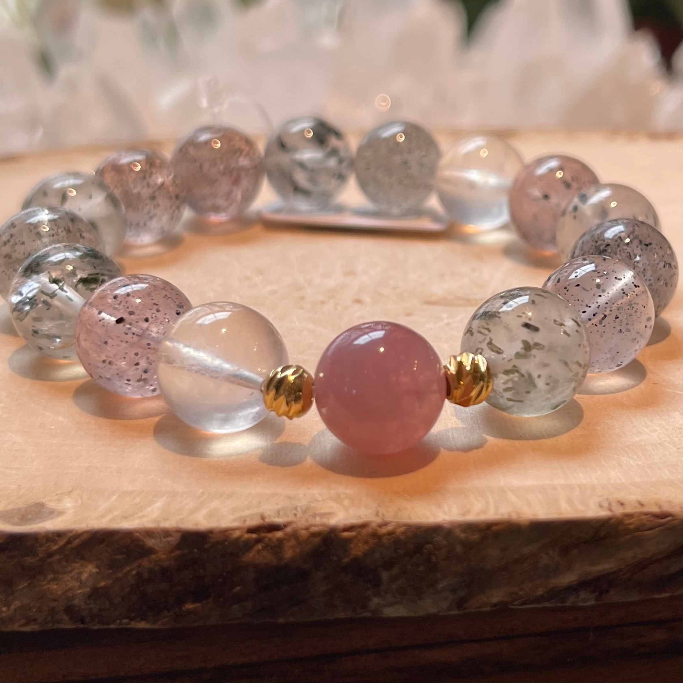 ◇バイオタイト・フックサイトインクォーツ&ディープスターローズクォーツ◇ブレスレット01