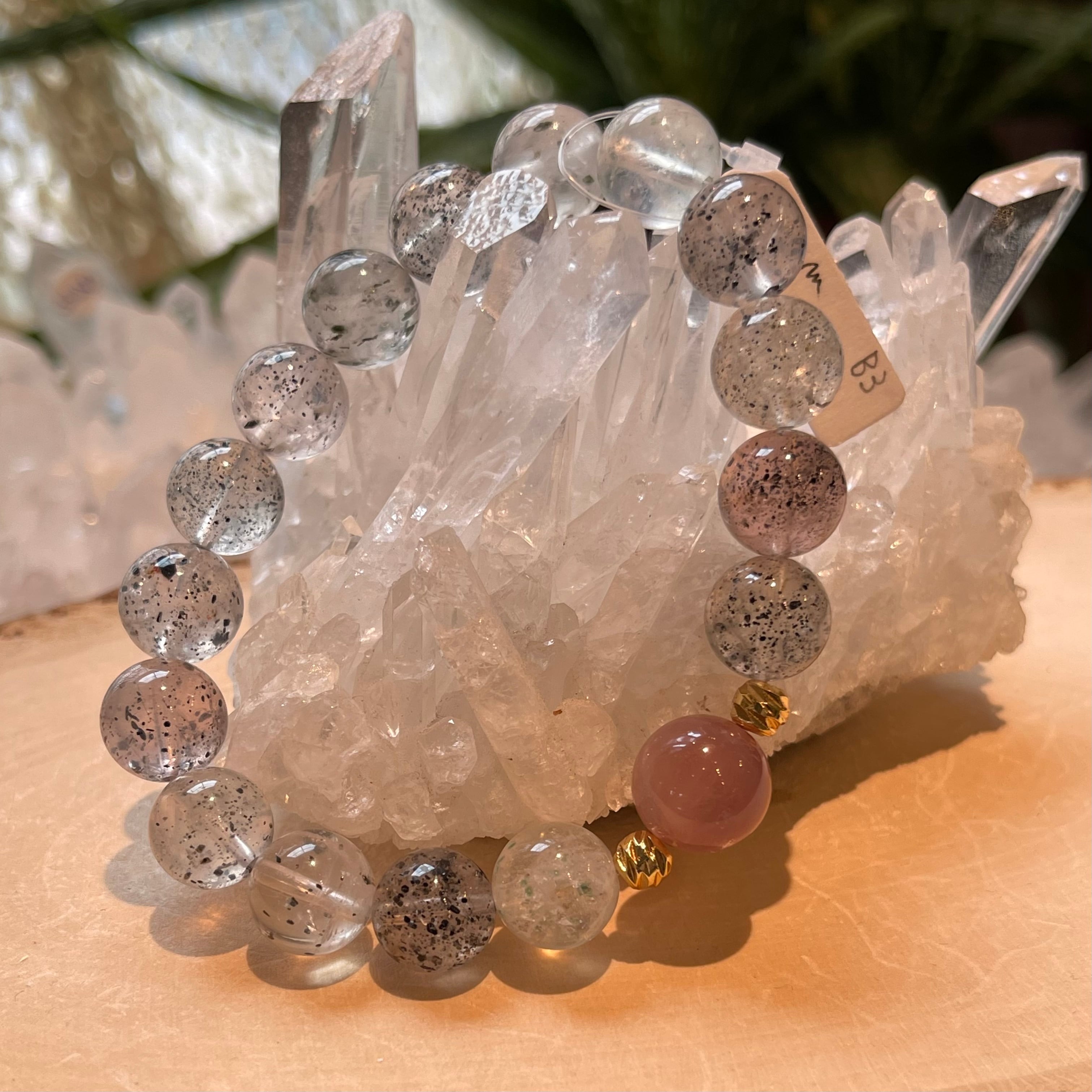 ◇バイオタイト・フックサイトインクォーツ&ディープスターローズクォーツ◇ブレスレット03