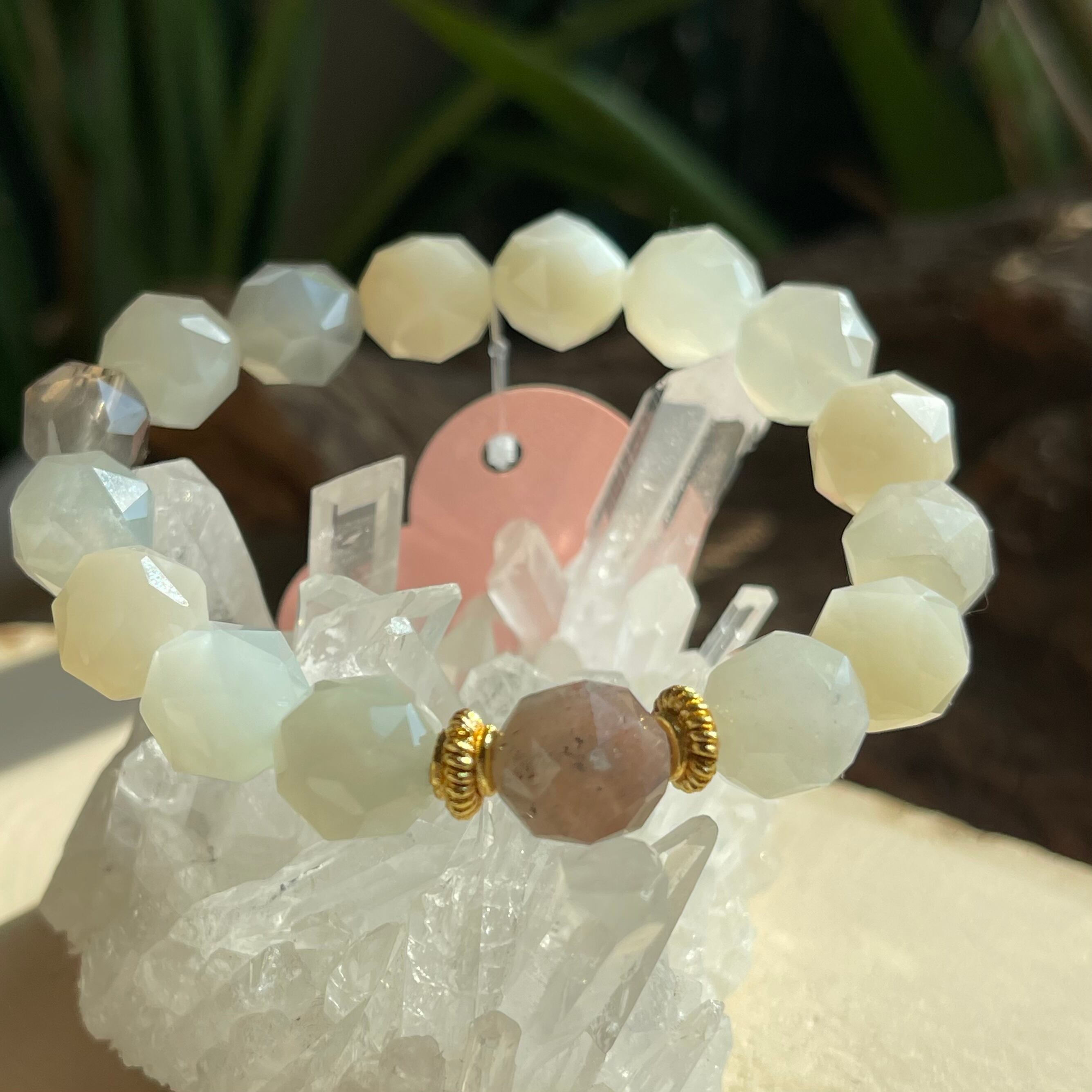 ◇サンムーンストーン&ムーンストーン◇カットブレスレット03