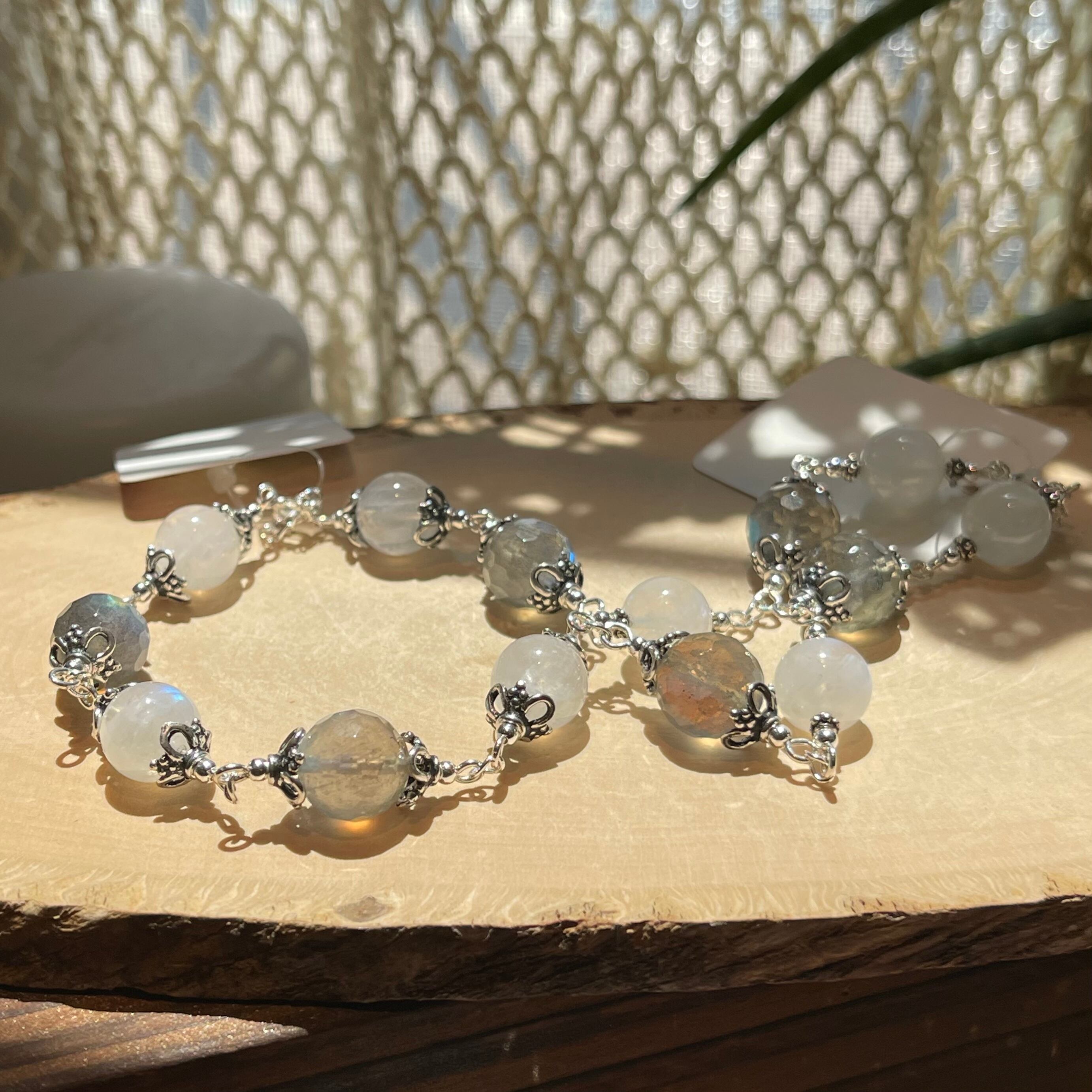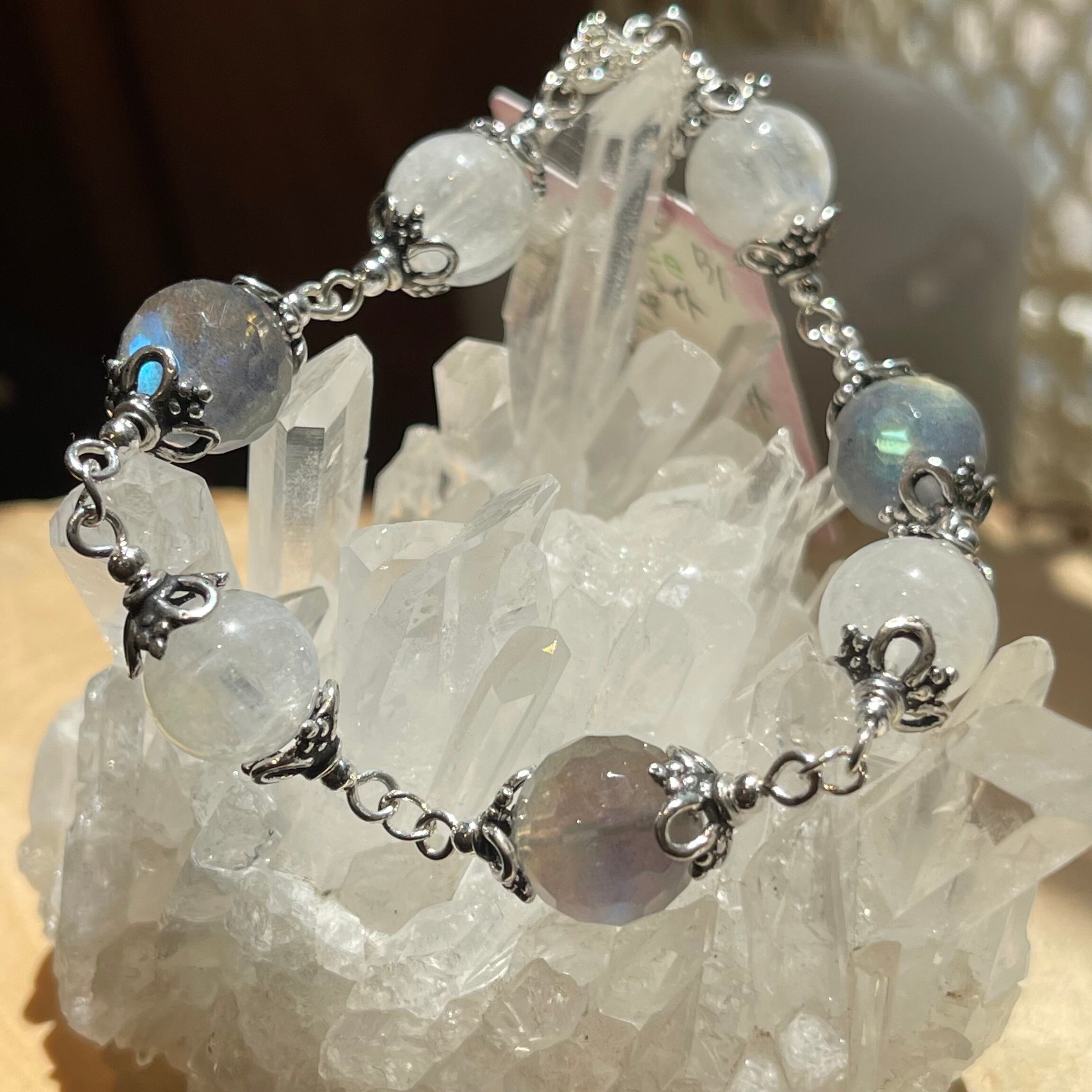 ◇ラブラドライト&ホワイトラブラドライト◇ピンブレスレット01