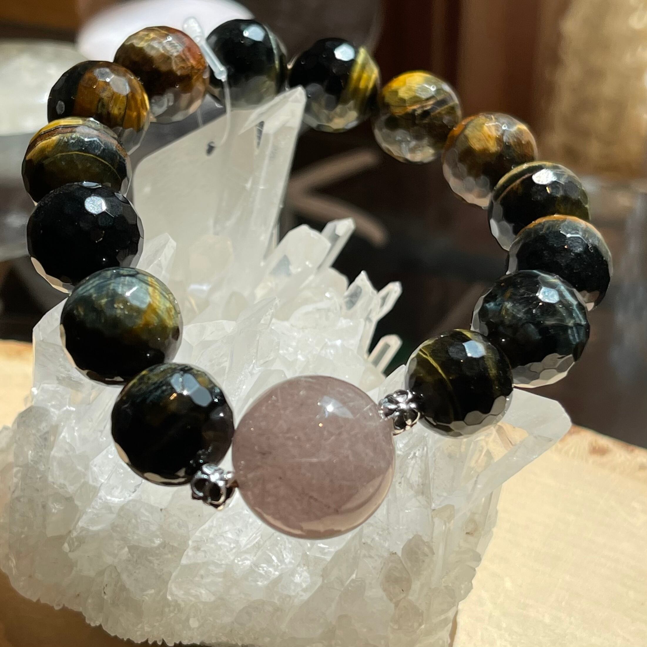 ◇バイカラータイガーアイ&パープルサゲニティッククォーツ◇ブレスレット01
