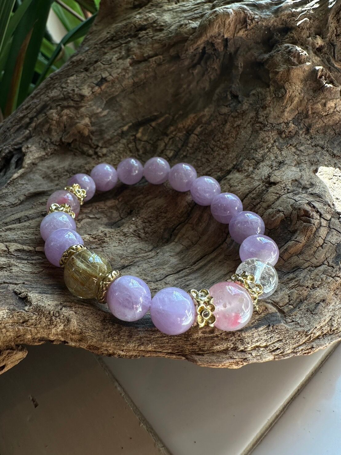 ルチルクォーツ&ロードナイトシリカ&トパーズ&クンツァイトブレスレット
