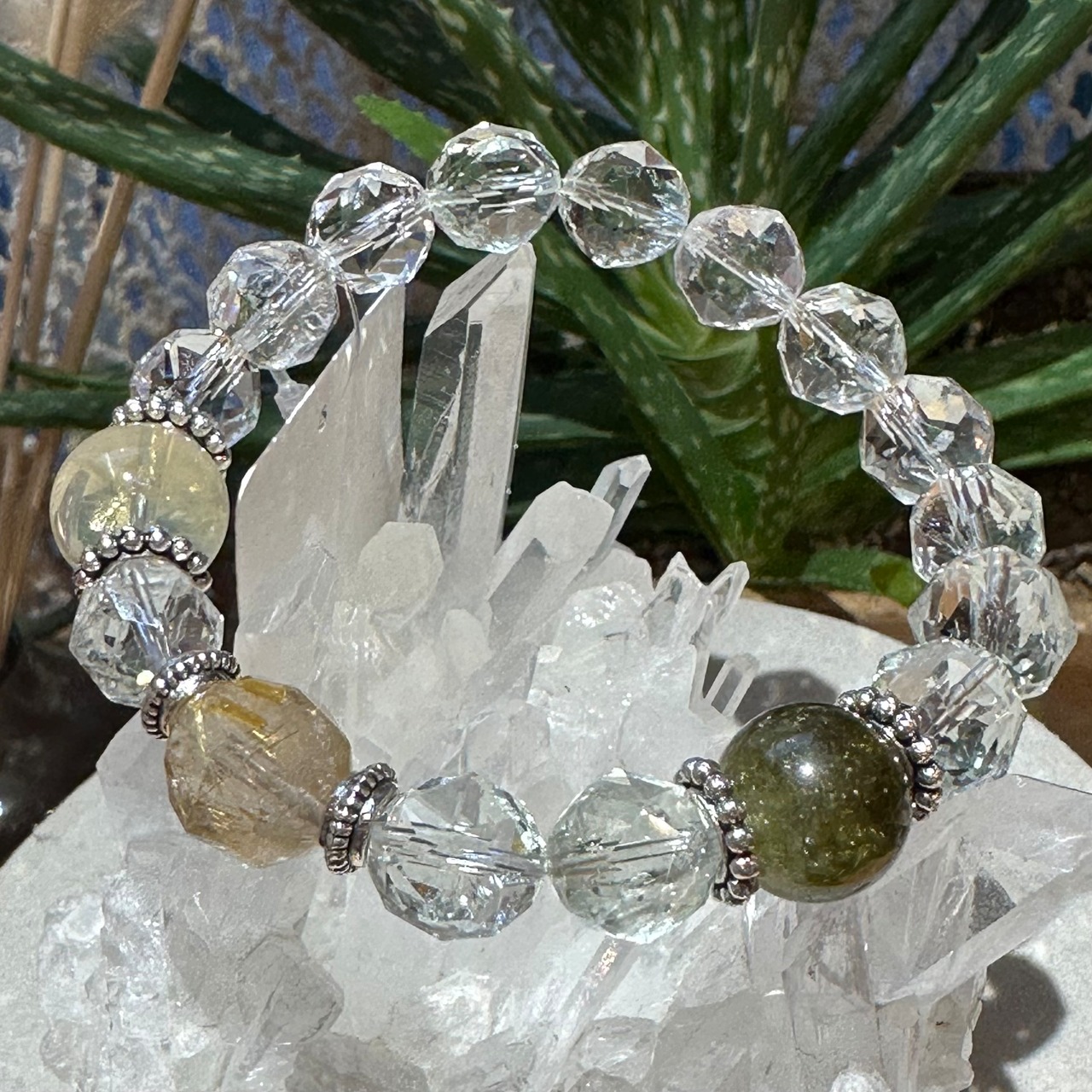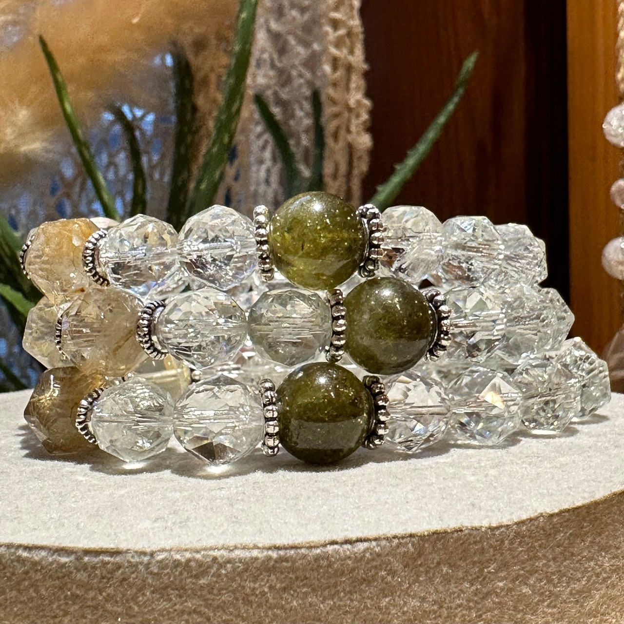 ◇グリーンガーネット&ルチルクォーツ&シトリンラダー&グリーンガーネット◇ブレスレットgrsg-02