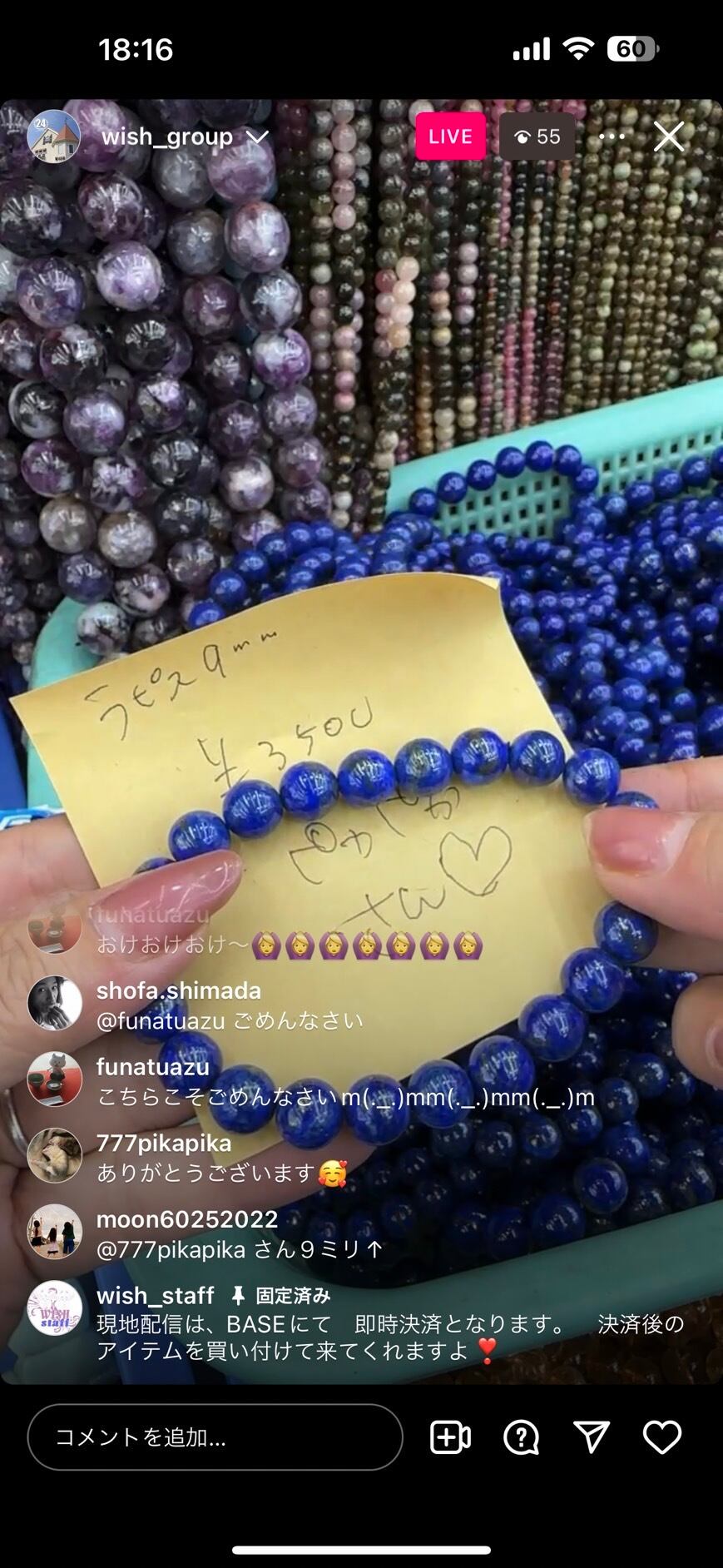インスタ現地ライブ中に『買います』とコメントをいただいた商品を
